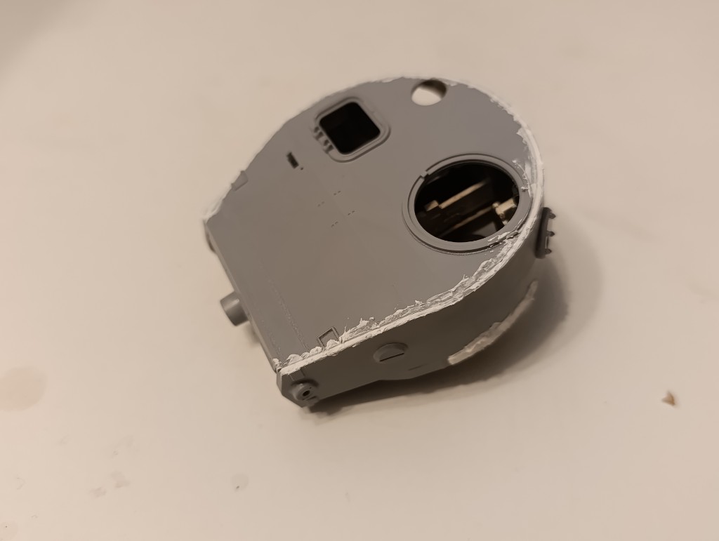 Dann habe ich den Trum zusammen gesetzt und den Deckel drauf gemacht. Es musste dabei einiges gespachtelt werden