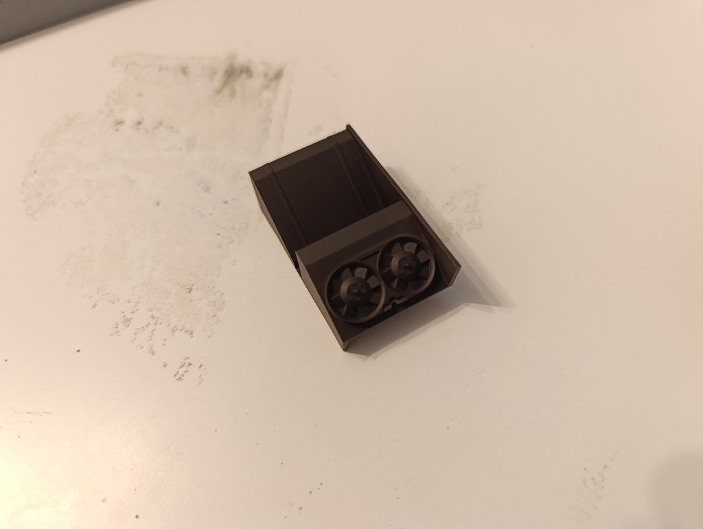 Die angedeutete Lüftung (mehr gibt es leider in der Wanne auch nicht) wurde bereits lackiert. Das Lufterrad lag seperat und dieses Teil auch zwei Mal bei.
