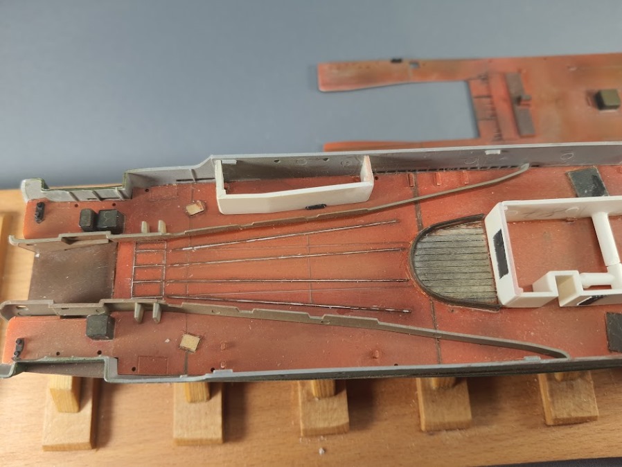 guter Hinweis. Nachdem ich deinen Kommentar gelesen hatte habe ich nochmal nachgebessert. Ich glaube so ist es besser. Das Vordeck gefällt mir schon ganz gut, die Heckschleppe, das ist die Rampe über die die vollen Netze gezogen werden, muss ich noch mal überarbeiten. Die kleinen Decks werden auch noch mal neu gemacht.