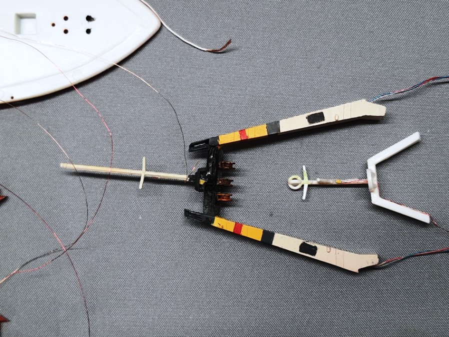 Der A – Mast ist lackiert, das Ergebnis halbwegs zufriedenstellend. Es war nicht einfach, die 3- farbige Markierung abzukleben und dann zu lackieren. Zuerst hatte ich den kompletten Mast in „Altweiß“ mit der Airbrush lackiert.