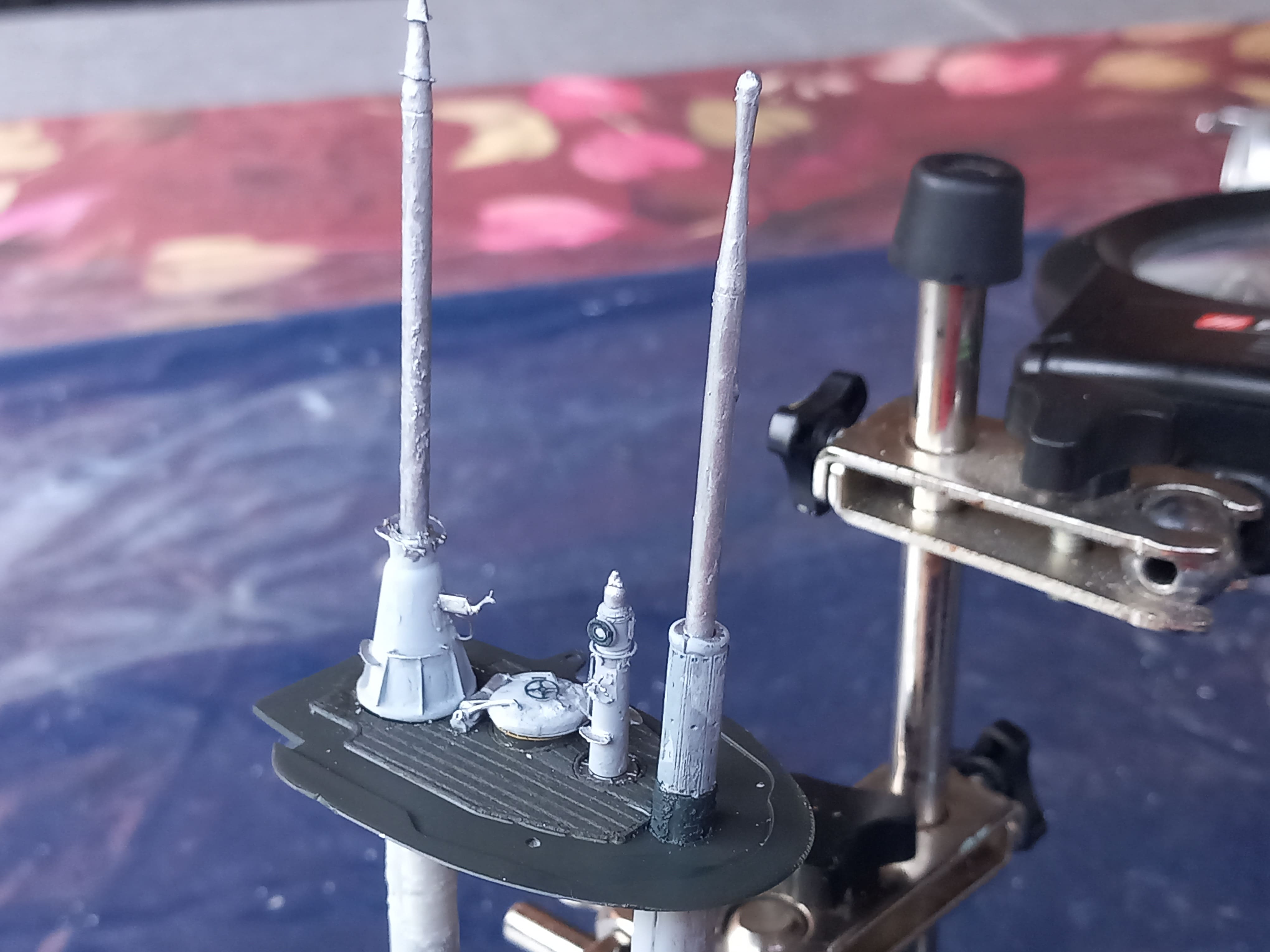 Weiter geht es mit den Aufbauten der Brücke. Zuerst habe ich die Antennen zusammengesetzt. Ausschließlich aus Ätzteilen.