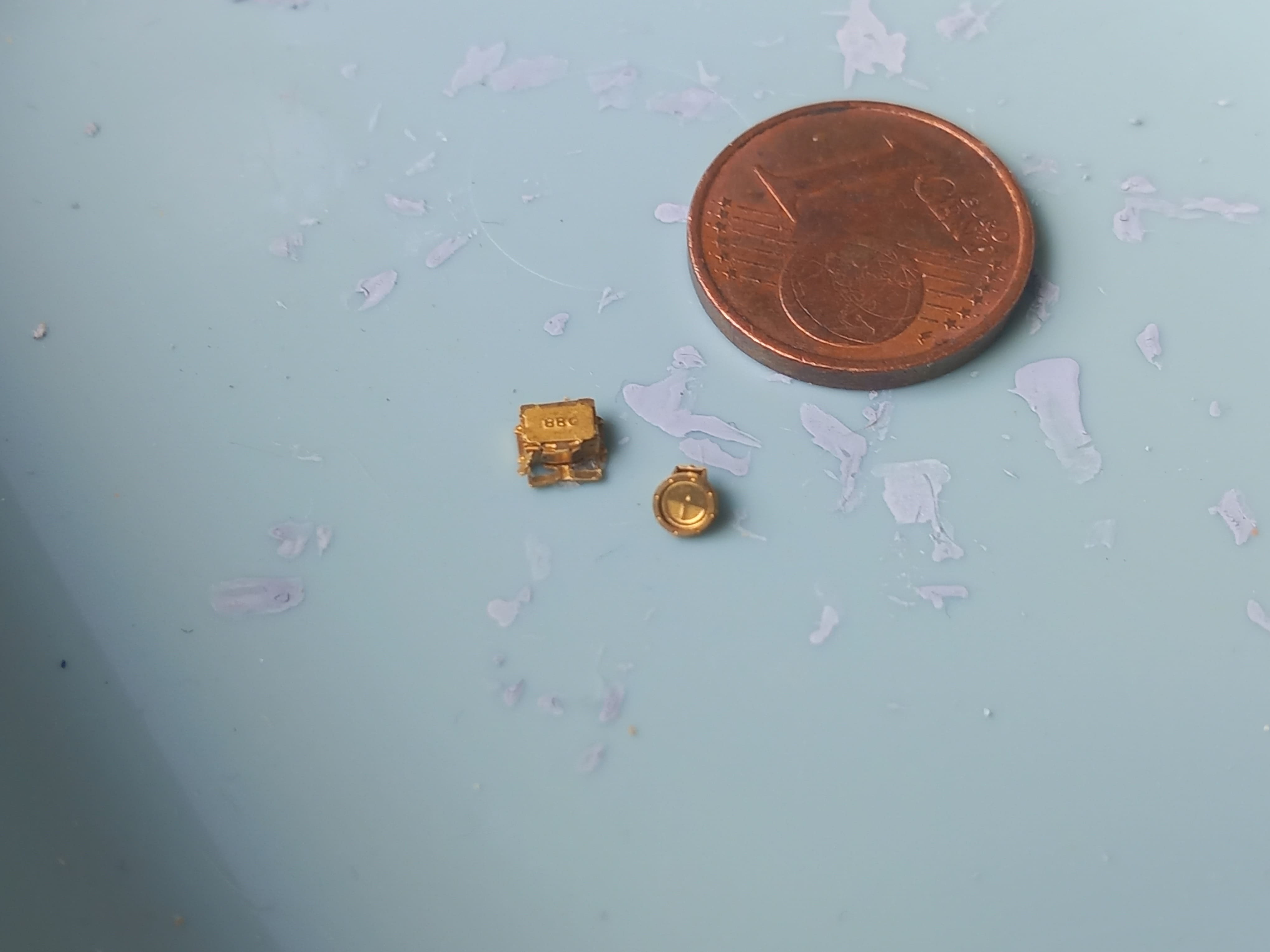Hier ist mir hier ein Fehler unterlaufen. Die Halterung vom UZO sieht ähnlich aus wie die der Antenne. Nur ist die Antennenhalterung sehr viel kleiner. Also musste ich die Antenne nochmal abtrennen und auf die kleinere Halterung aufbringen. Ist aber tadellos gelungen.