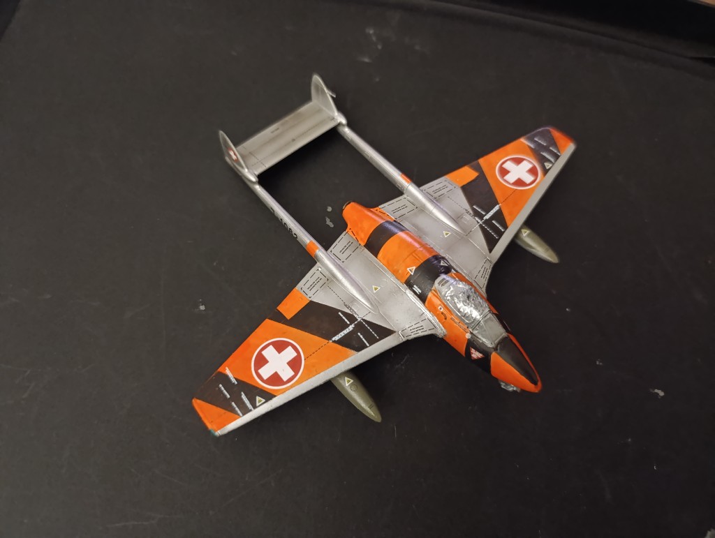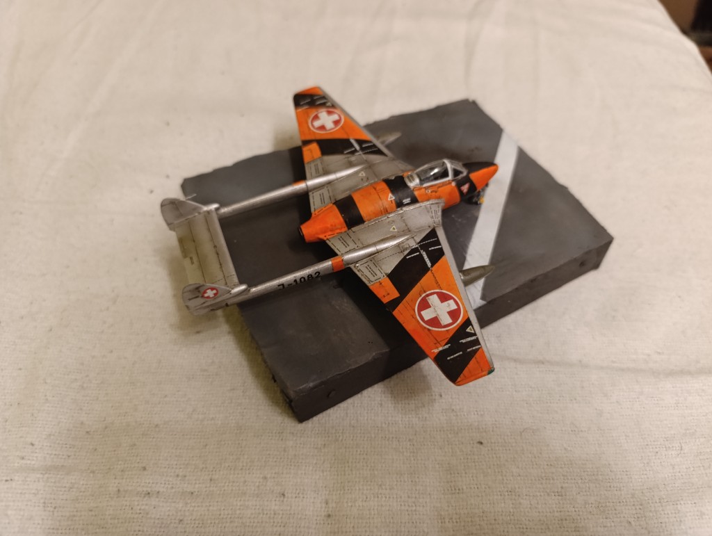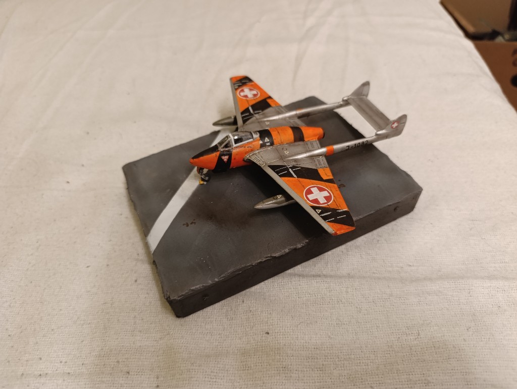 Die Alterung an der farbenfrohen Vampire ist soweit abgeschlossen und das Flugzeug damit eigentlich auch vollständig. Jetzt gilt es eine Base zu erstellen und noch einen passenden Piloten und Mechaniker zu finden. Vielleicht hat ja jemand was liegen?