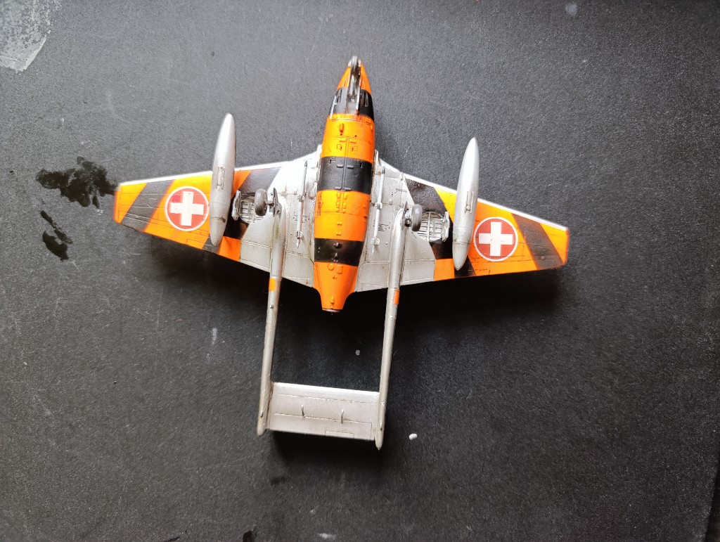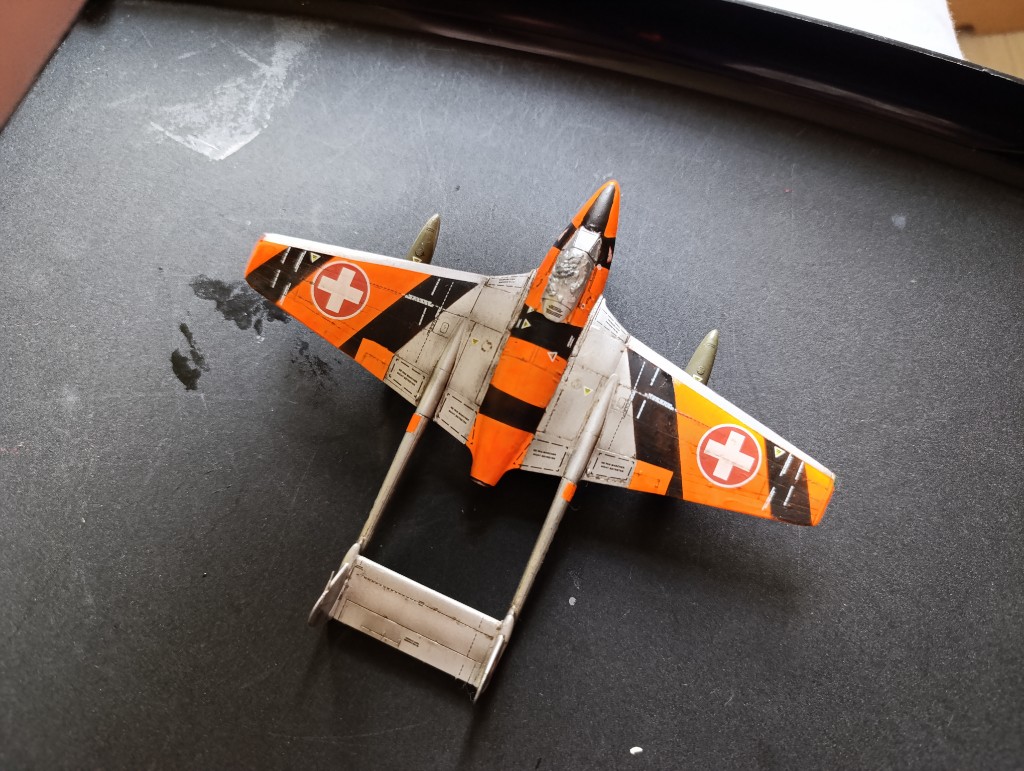 Es war jetzt hier länger Stil, dabei ist die Vampire fast fertig. Eine kleine Bodencrew verarztet den Flieger auf der Base