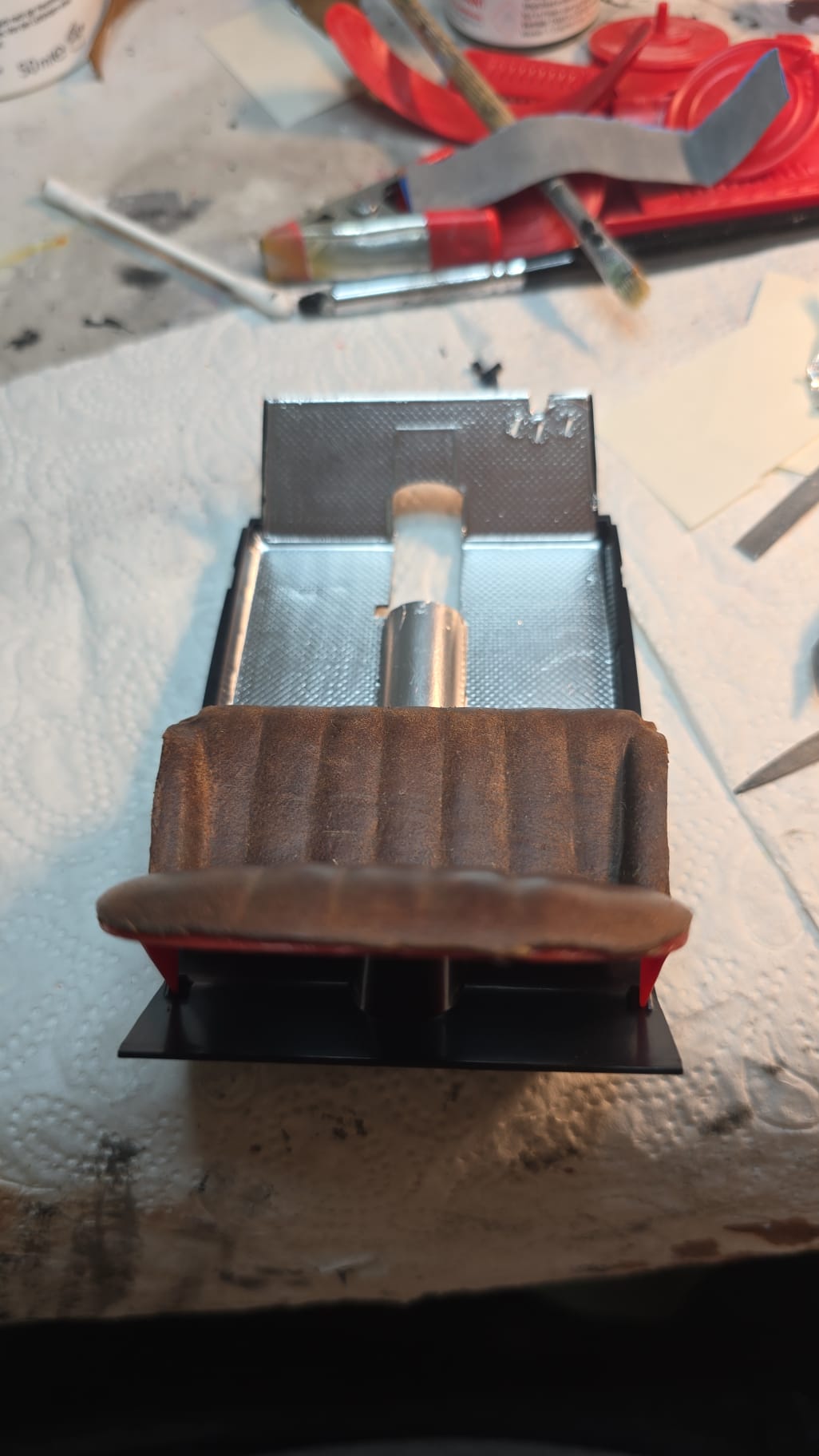 Ich kenne mich mit der Folie nicht so aus, aber es sieht ziemlich gut aus. Wenn du da jetzt mit Panel Liner oder stark verdünnter Ölfarbe drüber gehst, sollte die Struktur noch schöner rauskommen und es auch etwas dunkler werden. Ansonsten einfach wieder abwischen. Also das würde ich zumindest selbst bei mir so machen. Vielleicht gibt's aber auch gute Gründe dagegen?