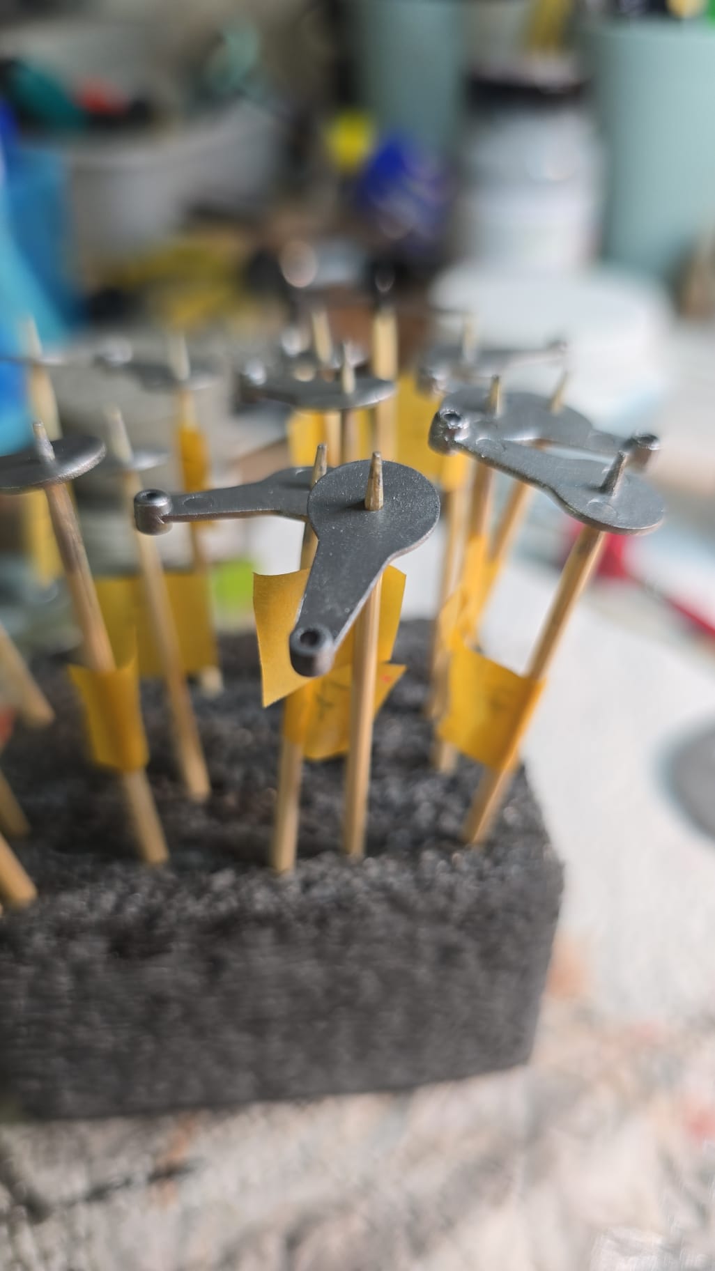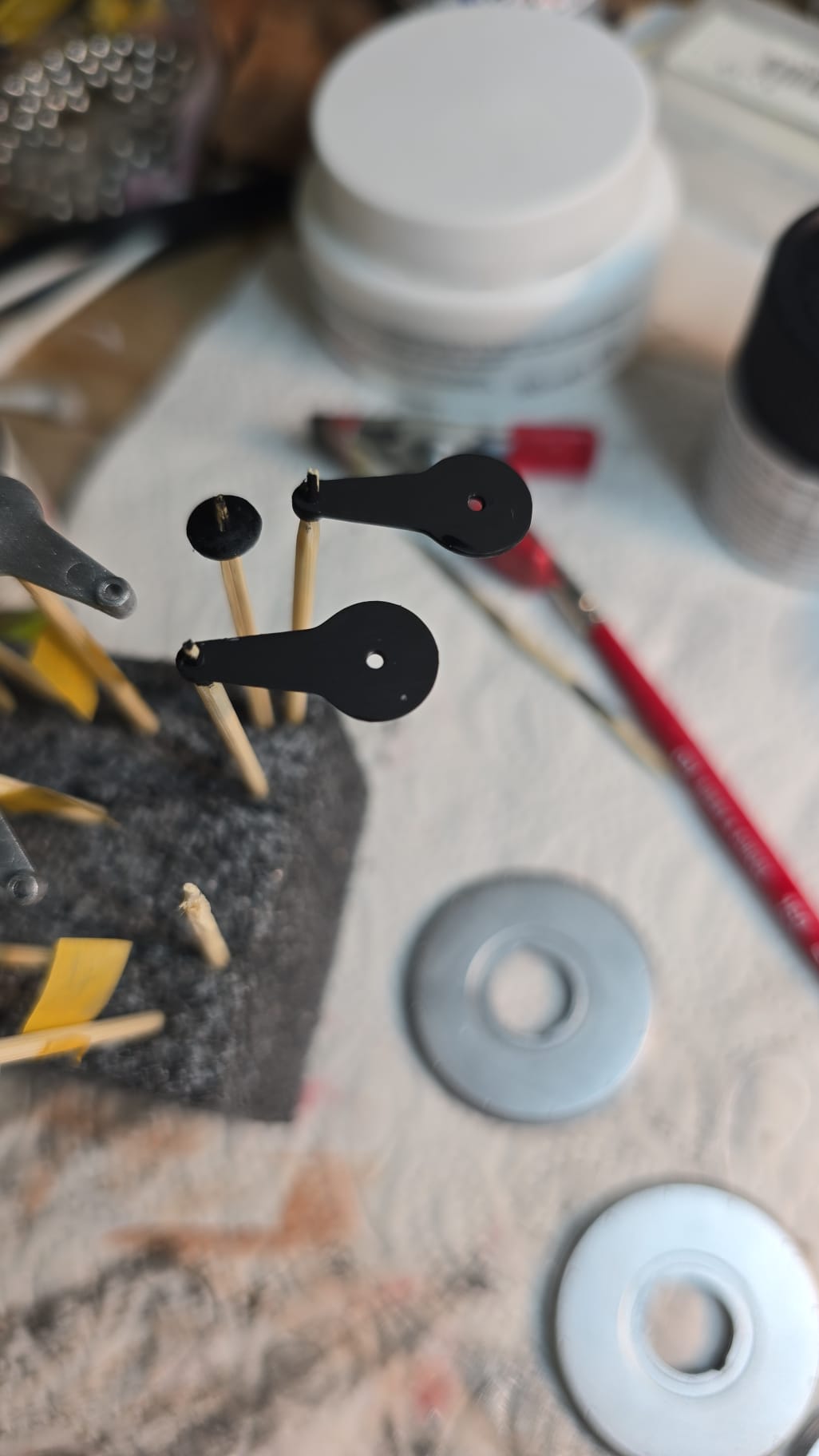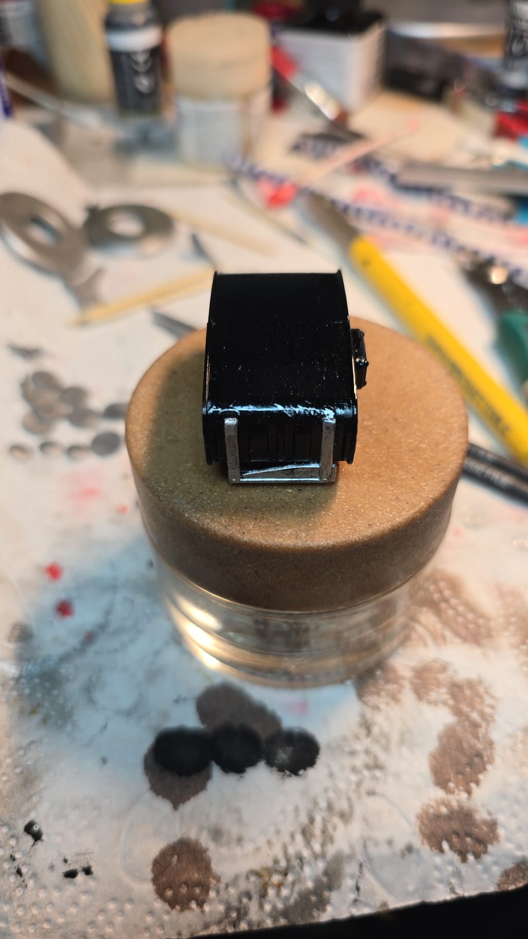 Ich habe Kleinteile der Federung lackiert, in der Bauanleitung soll das rot werden, auf realen Bildern ist es eher Stahl poliert und schwarz.