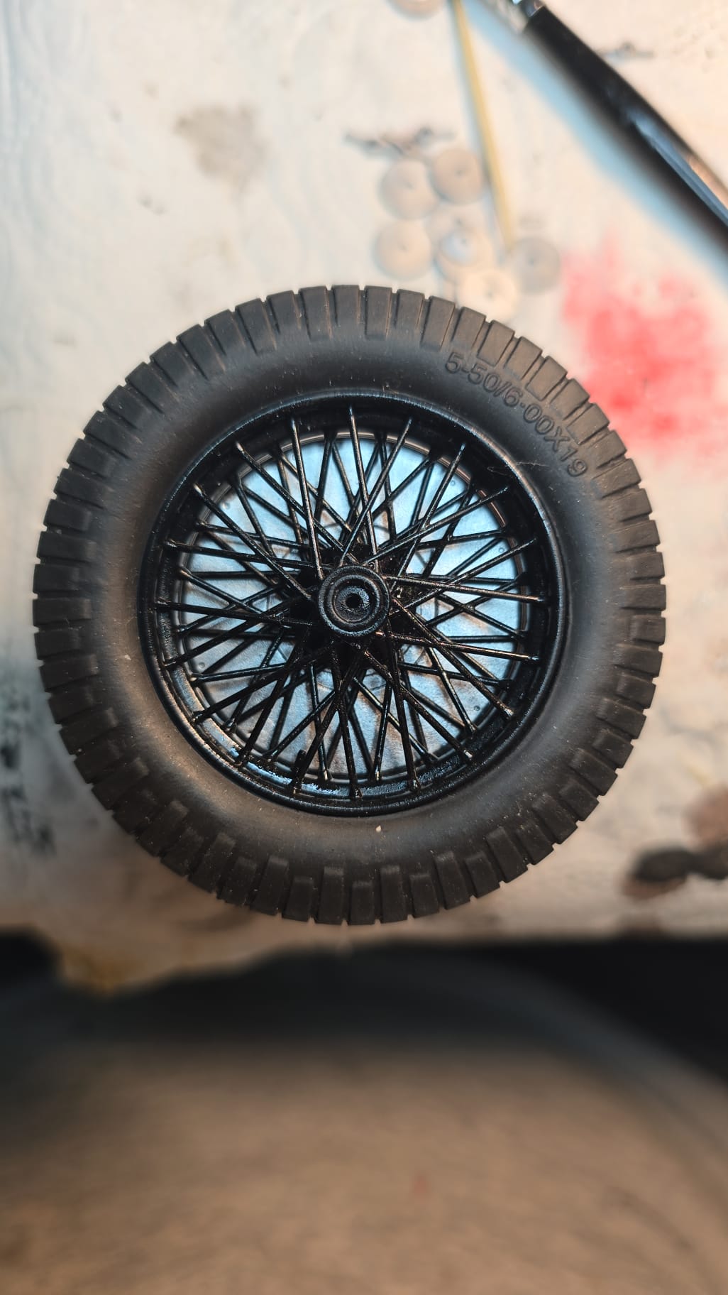 Die erste Felge ist auch fertig, allerdings gefällt sie mir noch nicht wirklich. Es fällt mir schwer, den Glanz auf die Felgen zu bekommen, trotz glossy schwarz und klarlack.