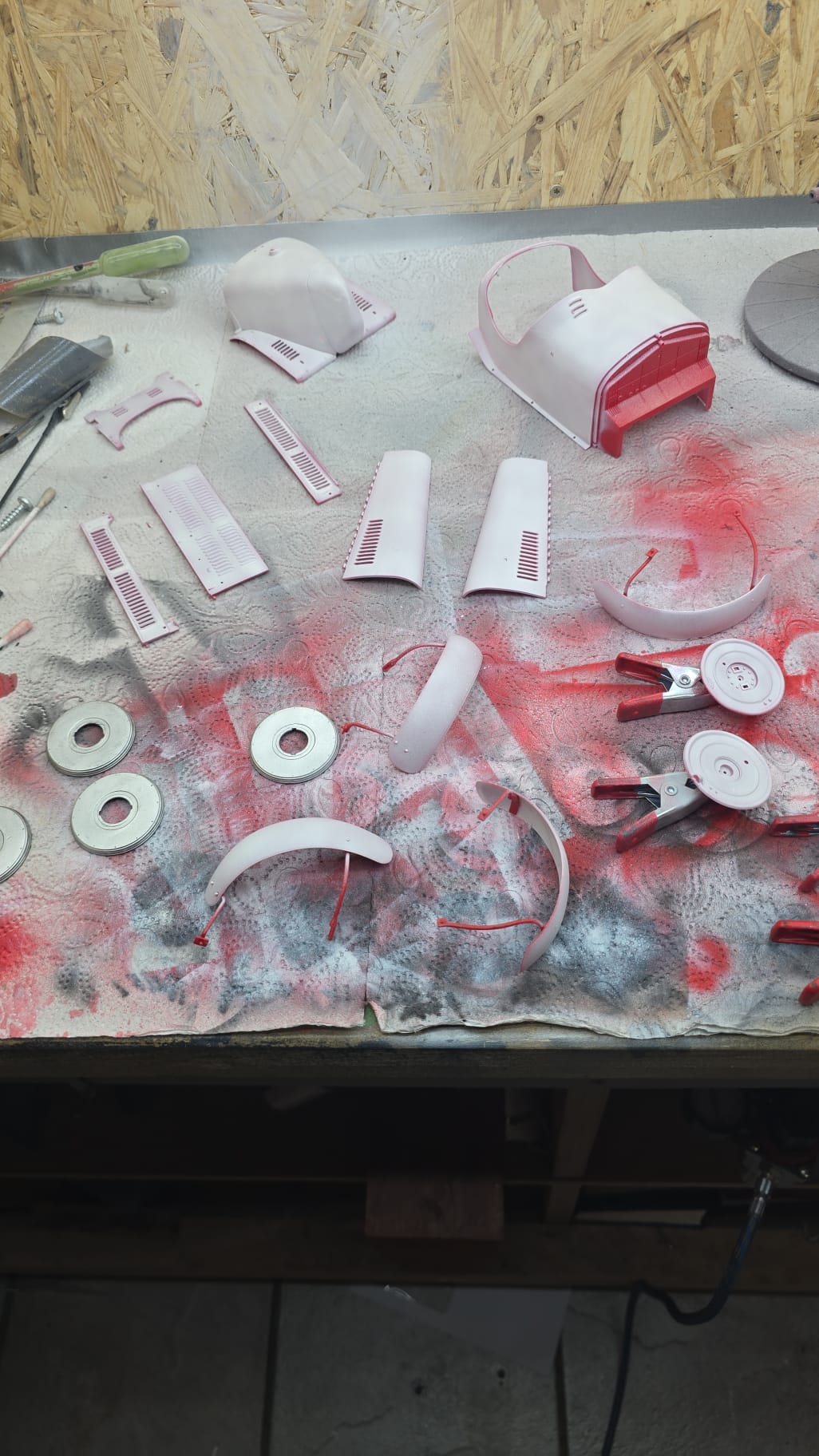 Doe meisten Karosserieteile sind grundiert. Hier ein Blick in die Lackierkabine