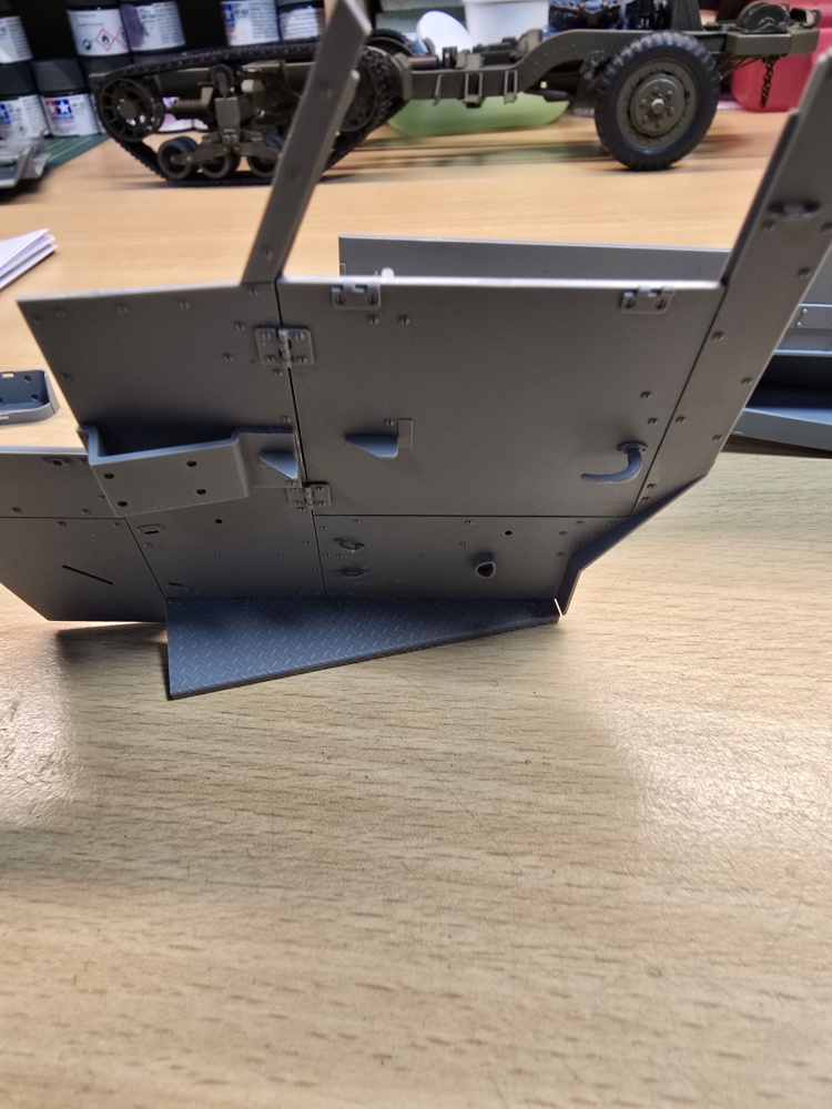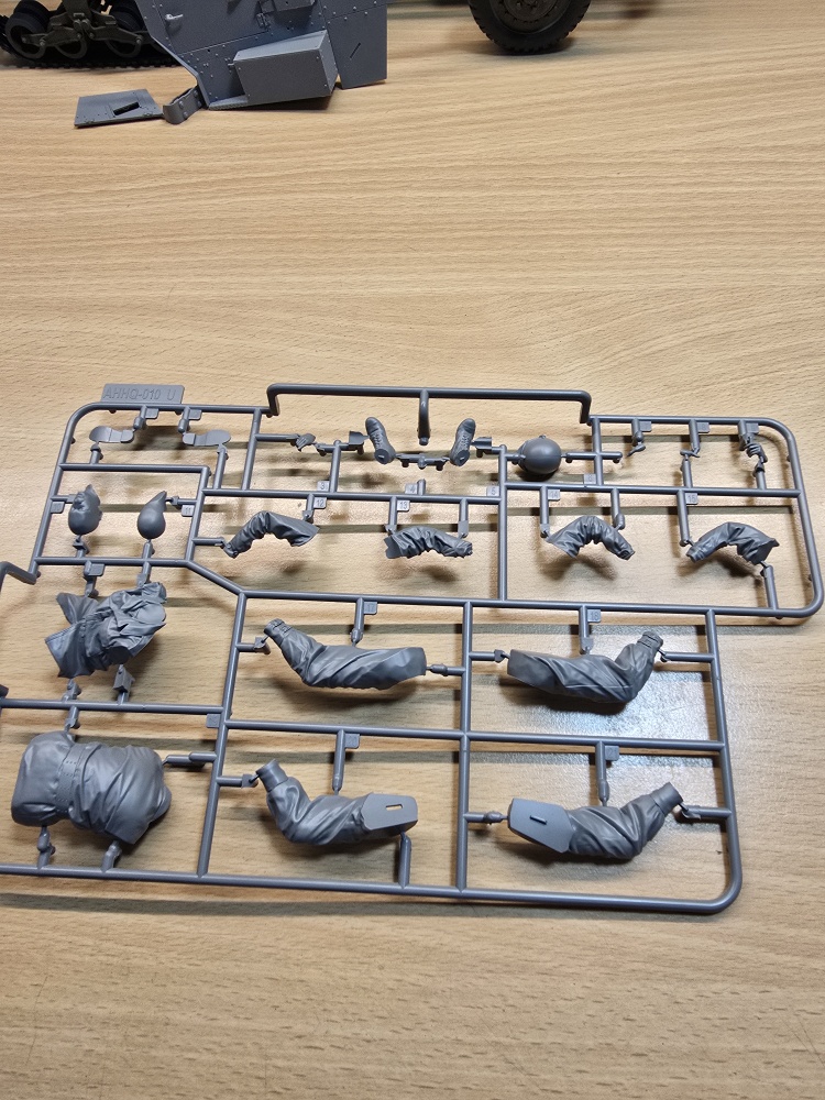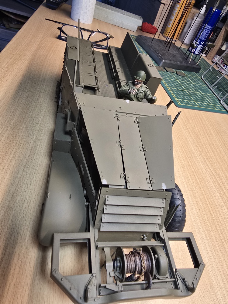 Laut Bauplan muss in die Fahrerkabine auch der Fahrer relativ zu Anfang mit eingebaut werden . Dieser liegt dem Bausatz auch bei . Leider aber nur eine Figur .2 bis 3 wären viel schöner gewesen. Auch hab ich noch nicht wirklich US Soldaten in 1/16 gefunden .