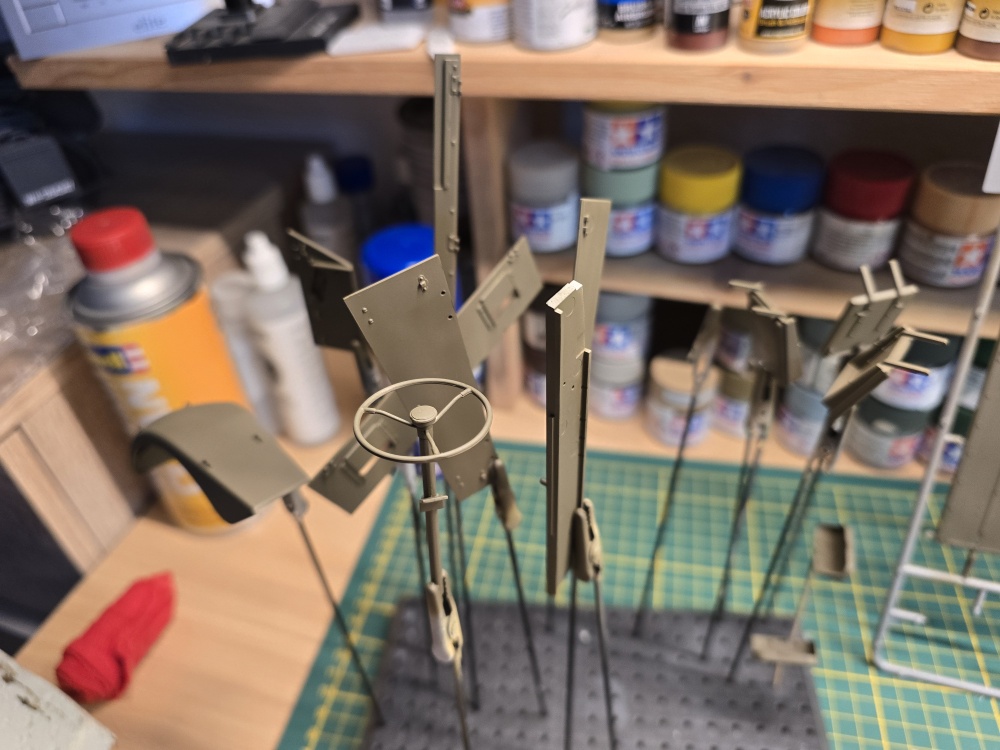 Dann mussten noch ein haufen Fahrzeugteile zusammen gebaut werden . Hier hab ich dann erst einmal das meiste erstellt , um dann alles auf einmal zu Lackieren .