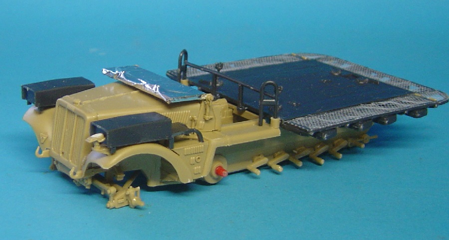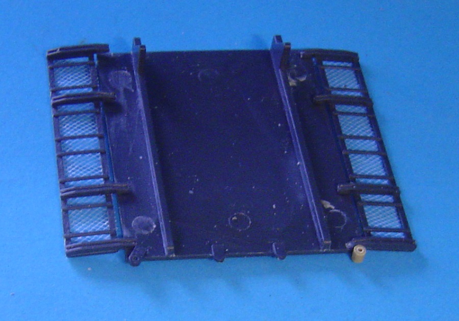 Und noch ein Fehler, man kann die Bordwände nicht aufgeklappt ankleben, weil die Halterung für den Schutzbügel im Wege steht. Also neue Halterung.