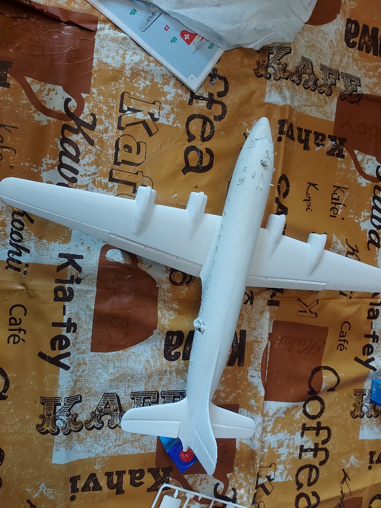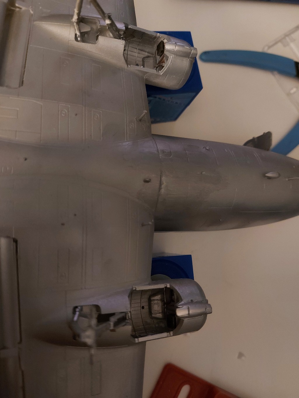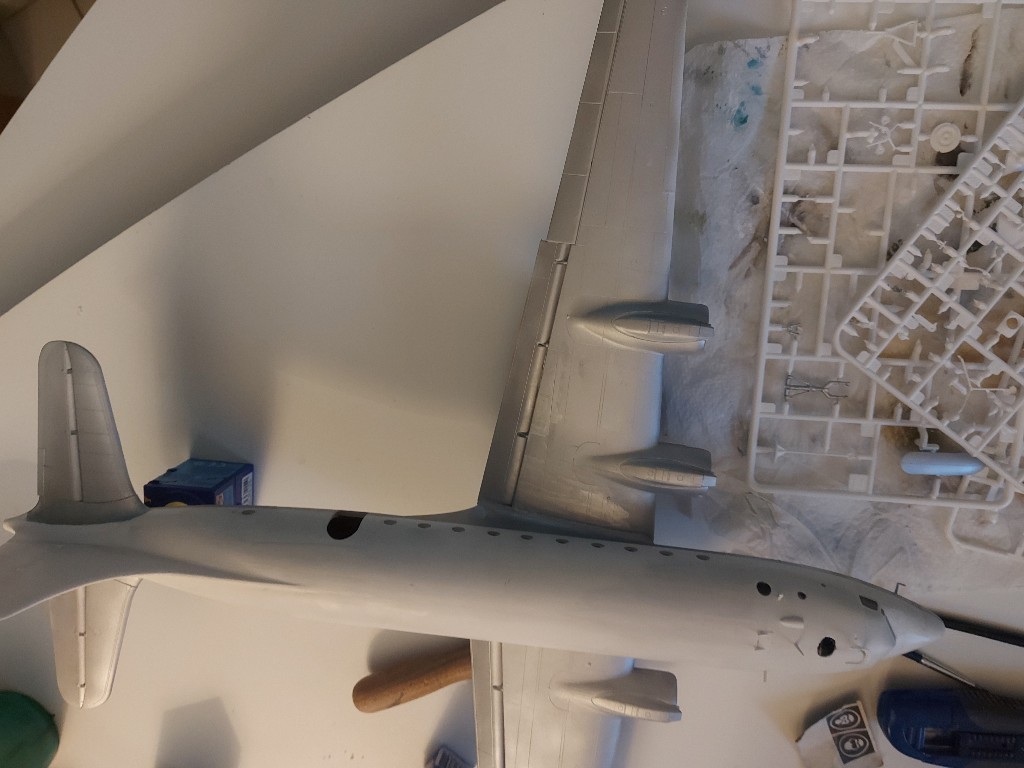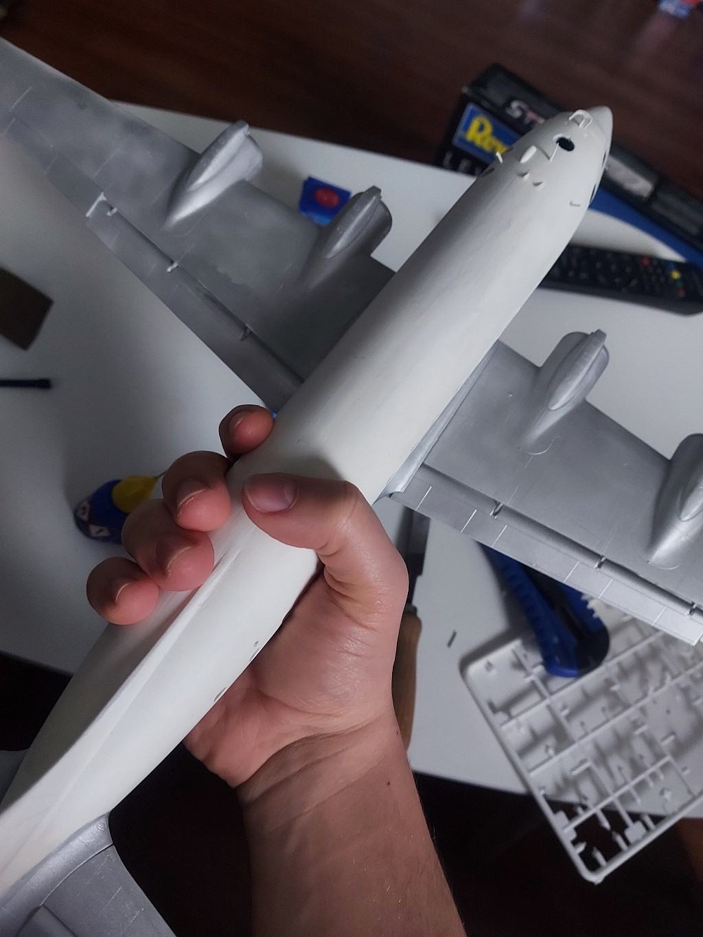 Hier werden die Ausmaße des Giganten sichtbar (damit überholt der Flieger mein bisher größtes Modell, die B-17G in 1:72) hier sieht man aber schon die vielen gespachtelten und geschliffenen stellen.