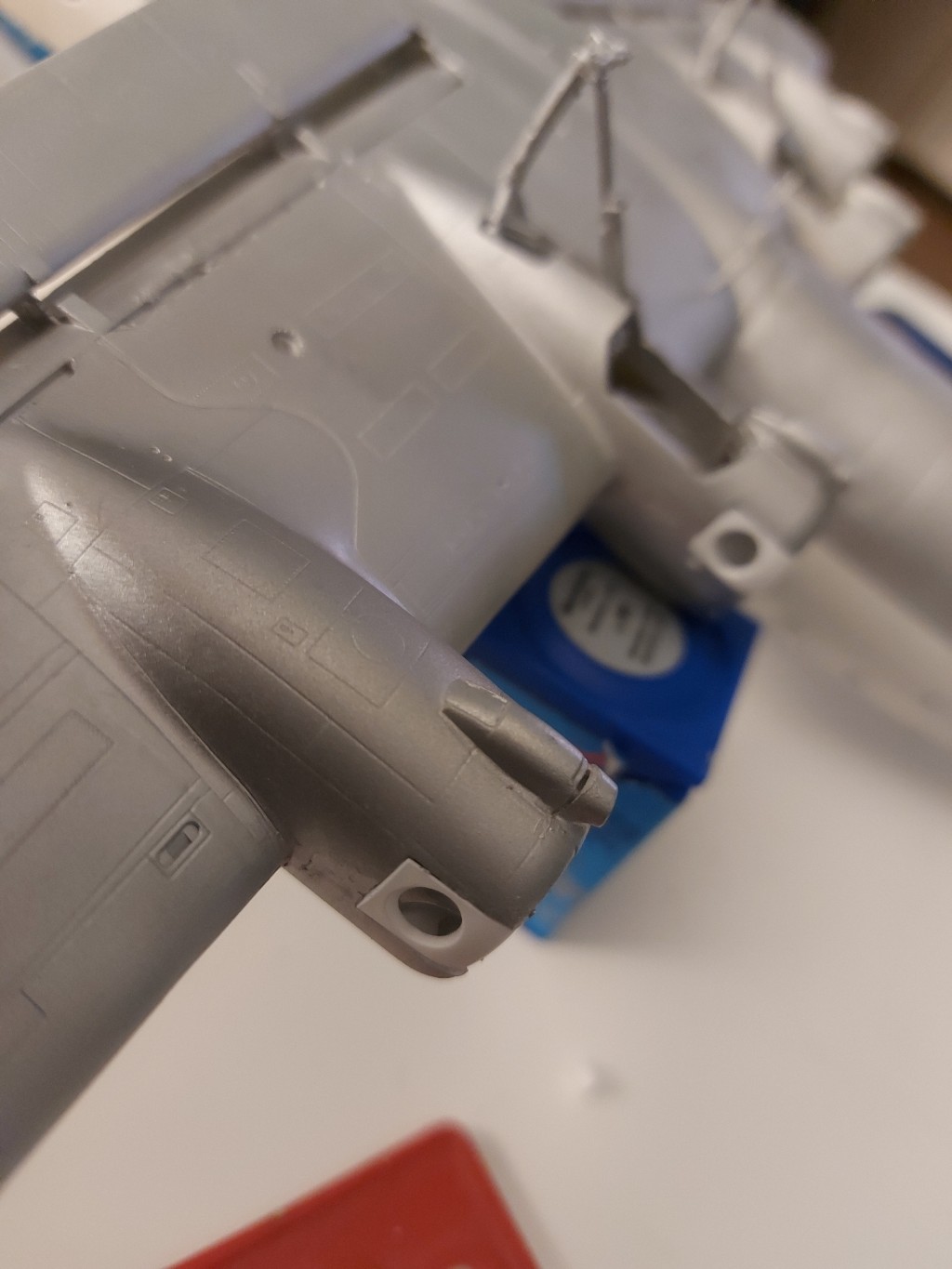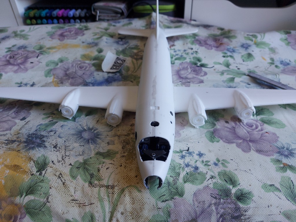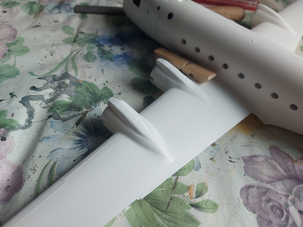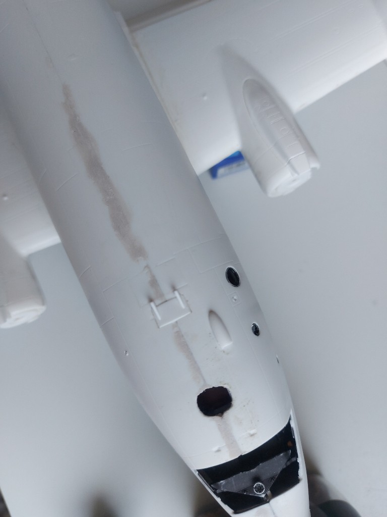 Hier werden die Ausmaße des Giganten sichtbar (damit überholt der Flieger mein bisher größtes Modell, die B-17G in 1:72) hier sieht man aber schon die vielen gespachtelten und geschliffenen stellen.