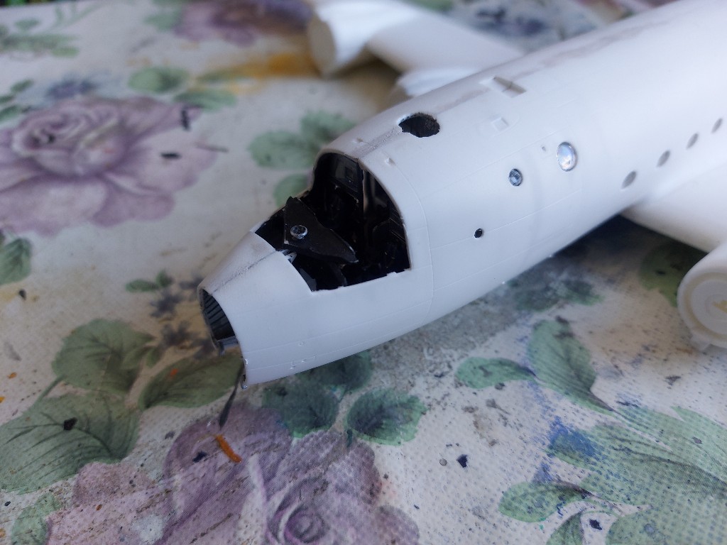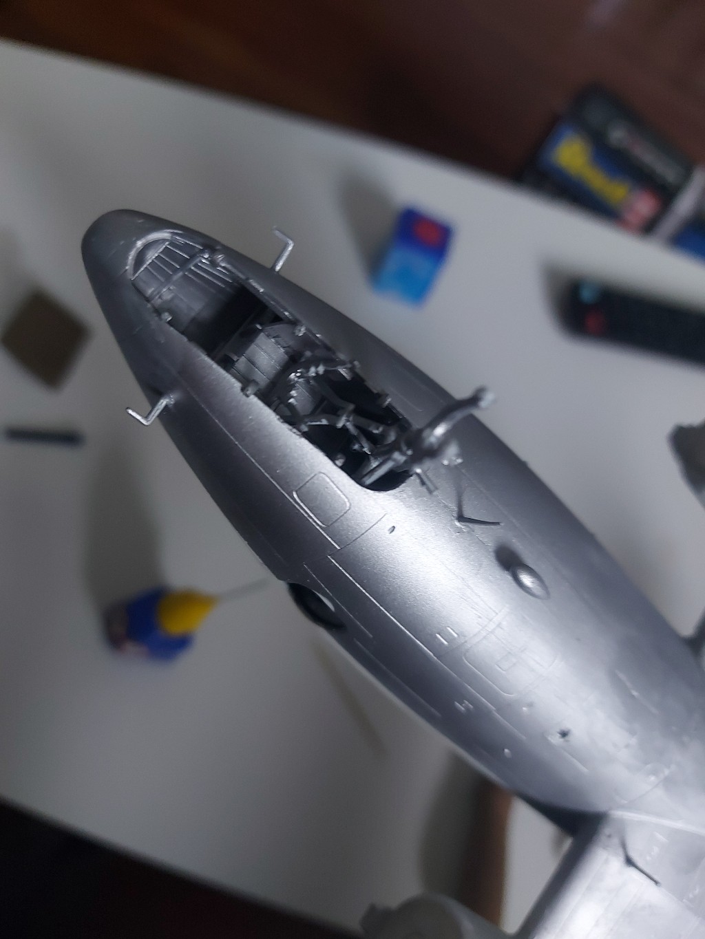 An der Cockpitsektion lässt sich noch ein bisschen was vom Innenraum ausmachen, man erkennt aber auch dass der Flieger hier gut gespachtelt und geschliffen werden muss. Das war der nächste Schritt