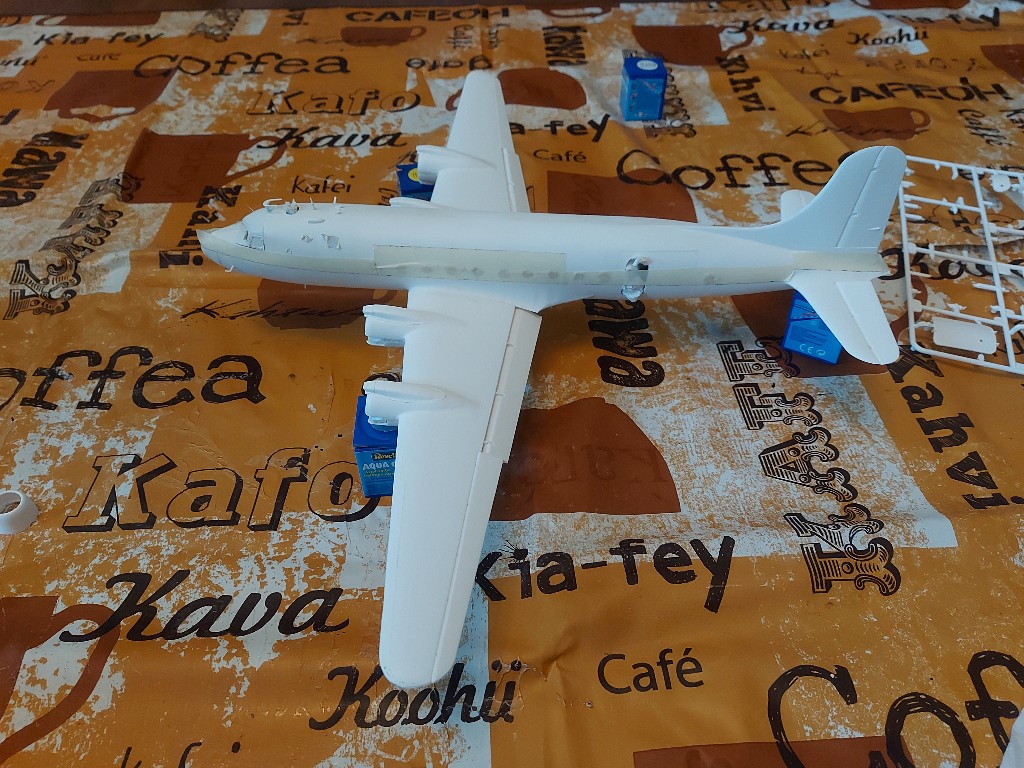 Auf alle Fälle, ich überlege auch mir später mal noch die C-54 von Revell zu holen. Allerdings muss ich kritisieren, dass trotz des recht jungen Alters der Form, einige Teile sehr nachgerarbeitet werden müssen. Gerade am Fahrwerk gab es zwei Teile,bei dem Stäbe aus Stellen herausgekommen sind, wo eigentlich Passlöscher sein sollten usw. Hatte ich so auch noch nicht. :shock: