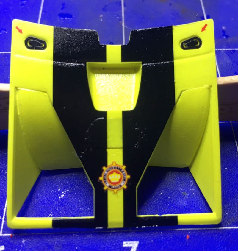 Die Front habe ich nach Anleitung vor der Lackierung mit den geätzten Gittern versehen, um Kratzer zu vermeiden.