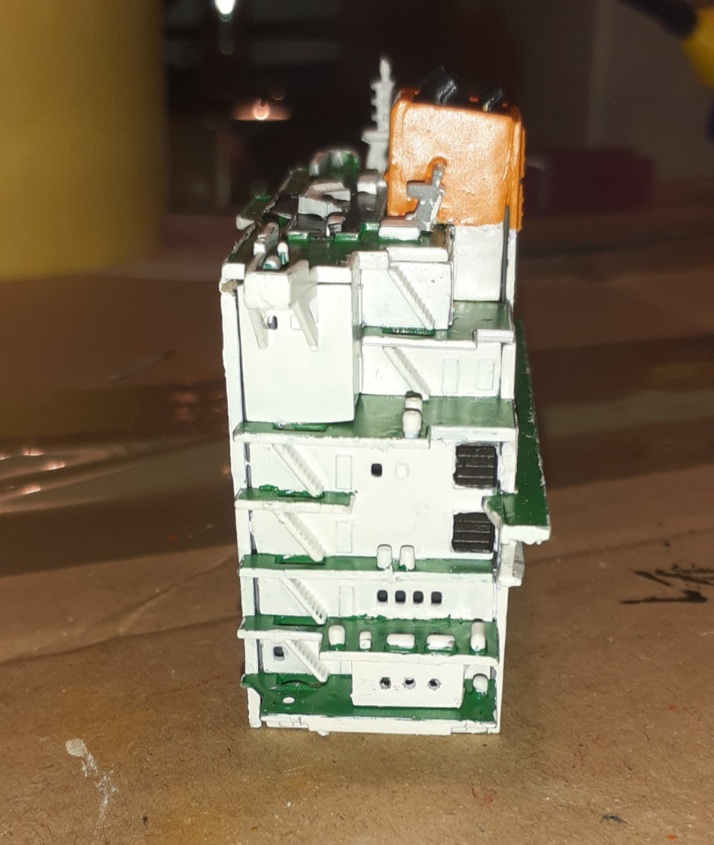 Nach dem Rumpf....der zwar wie beschrieben beim Lackieren die ein oder andere Verbesserung hätte erleben können, für mich als Grobmotoriker aber ganz gut von der Hand ging, kam der Brückenaufbau...