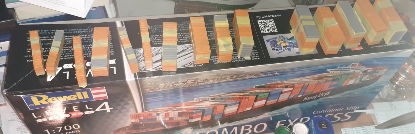 Es folgte dann der Zusammenbau der containerblöcke...sowie die erste Lackierung mit der hapag farbe...
