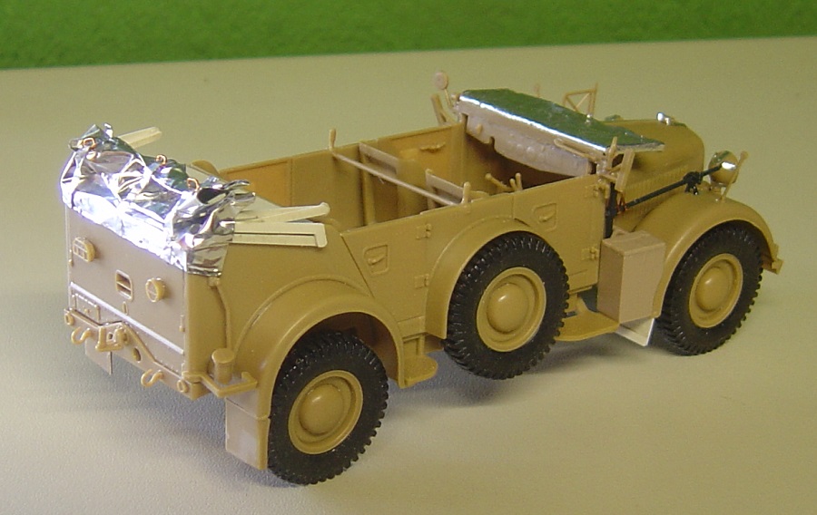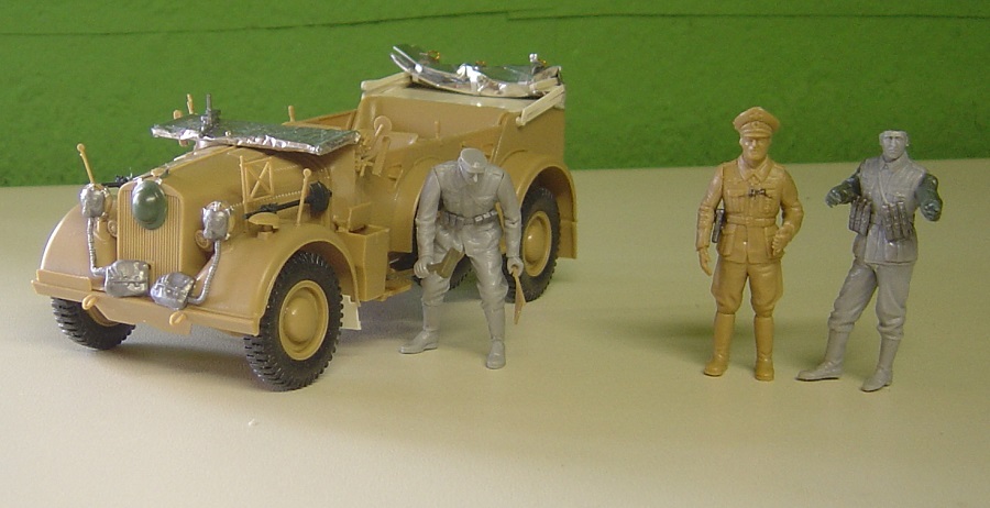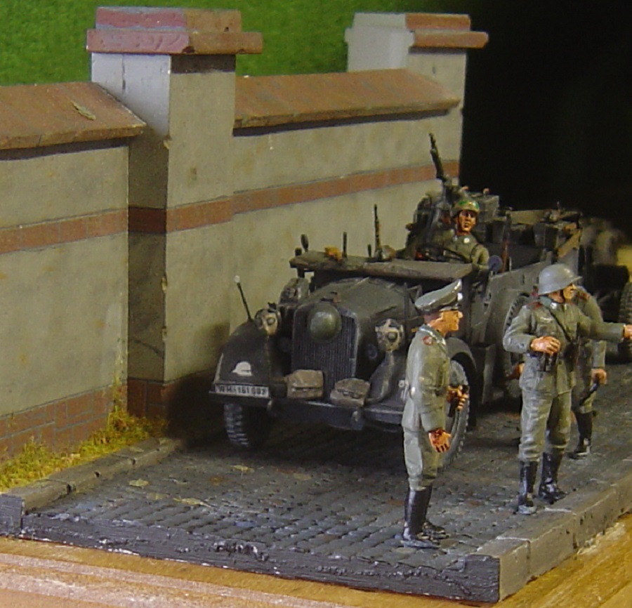 Benzinkanister vom Horch Bausatz. MG 34 mit Trommelmagazin auf Fliegerdreibein, zwei Handgranatenkisten , Trommelmagazinträger mit zwei Trommelmagazinen, und drei MG-Munitionskisten.. Ein Beifahrer vom Opel Blitz mit anderen Armen und Verlinden-Kopf gibts auch noch.