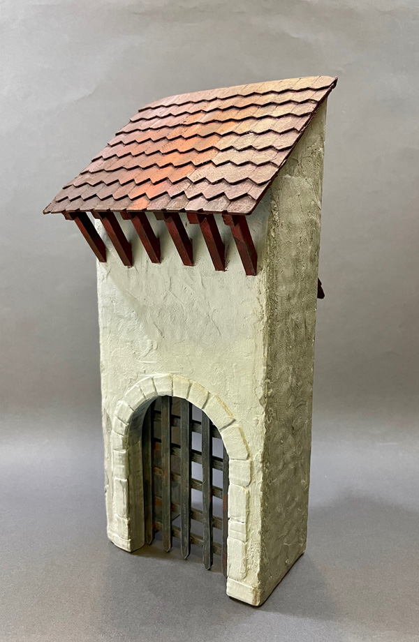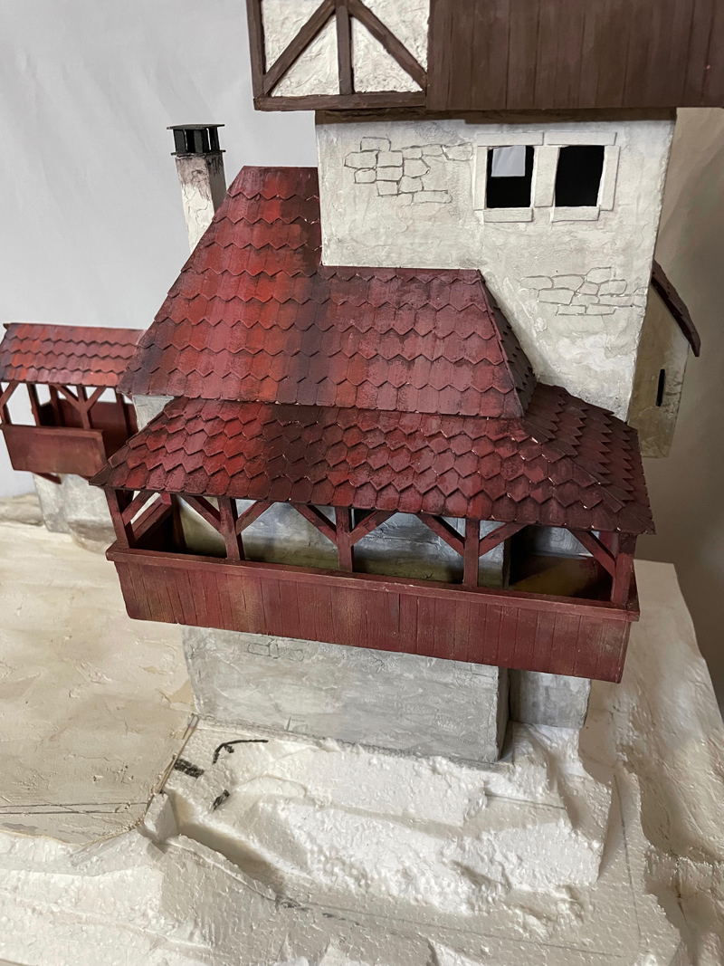 Nachdem die Wand, an die der Laubengang angebaut ist, patiniert war, konnte endlich das letzte Dach aufgesetzt werden.