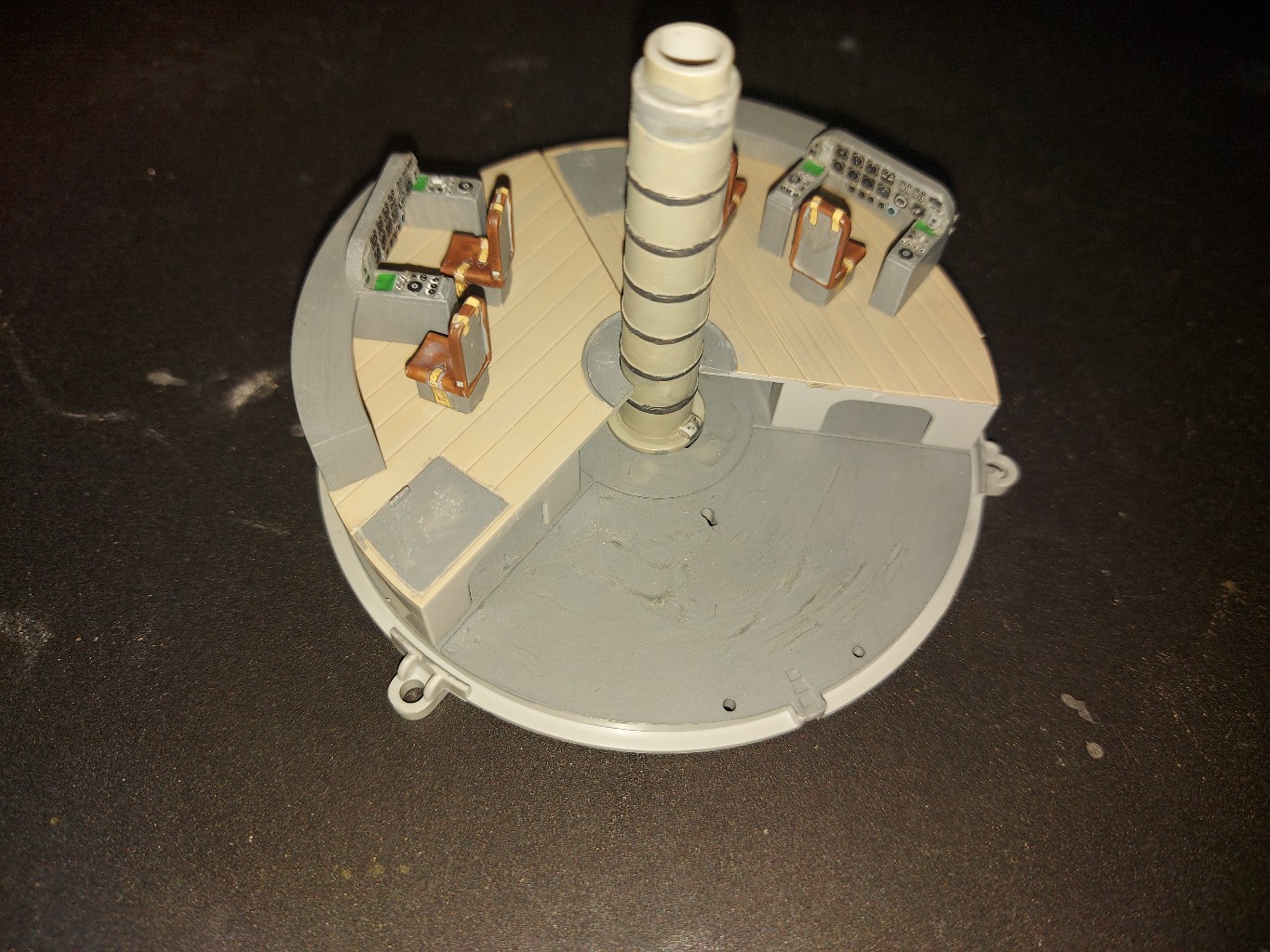 Wie dem auch sei, es ging zunächst mal damit los, die drei Cockpitteile an das UFO zu bringen.