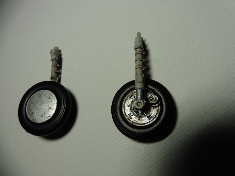 In der Trocknungszeit habe ich dann das Fahrwerk erstellt . Ich habe die glatte Reifen Version genommen . Die Radialreifensind in die Grabbelkiste gekommen