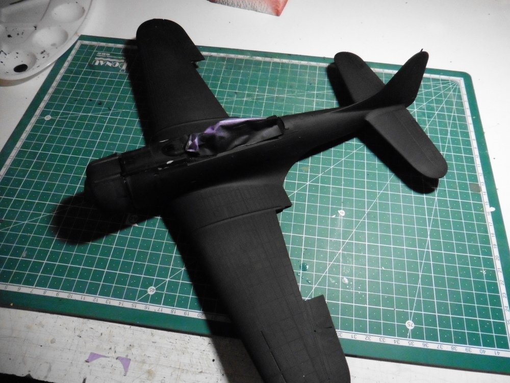Das ganze flugzeug wurde dann esrt einmal schwarz mit Fine Primer grundiert Wärend das trocknen musste hab ich dann die Cockpitcancel abgeklebt . Da das 5 Elemente sind und diese auch von innen abgeklkebt werden mussten , war das ne ganz ordentliche fummelarbeit. Hierfür hatte ich mir aber schon im Vorfeld von Montex das MaxiMask MM32065 bestellt . Hir sind nämlich noch die Hoheitszeichen wie auch Diverse andere Mask enthalten um diese dann mit der Airbrush zu machen , was meiner Meinung nach 1000 mal besser aussieht wie Decals. Ich hab mich übrigens für die offene Darstellung entschieden .( Es liegen noch 4 Weitere für geschlossene Darstellung bei )