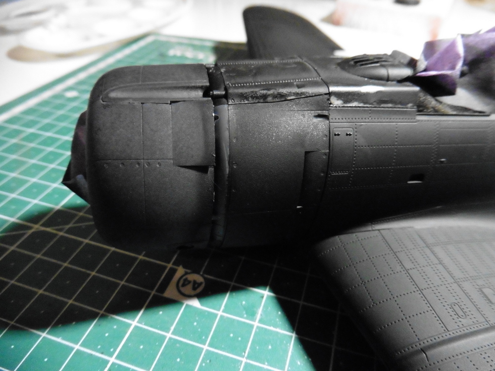 Im nachhinein hab ich mich geärgert , dass ich den Motorblock schon verklebt hatte . Diesen hätte man erst mal weg lassen können und hätte diesen dann auch nicht abkleben müssen vor dem Lackieren.