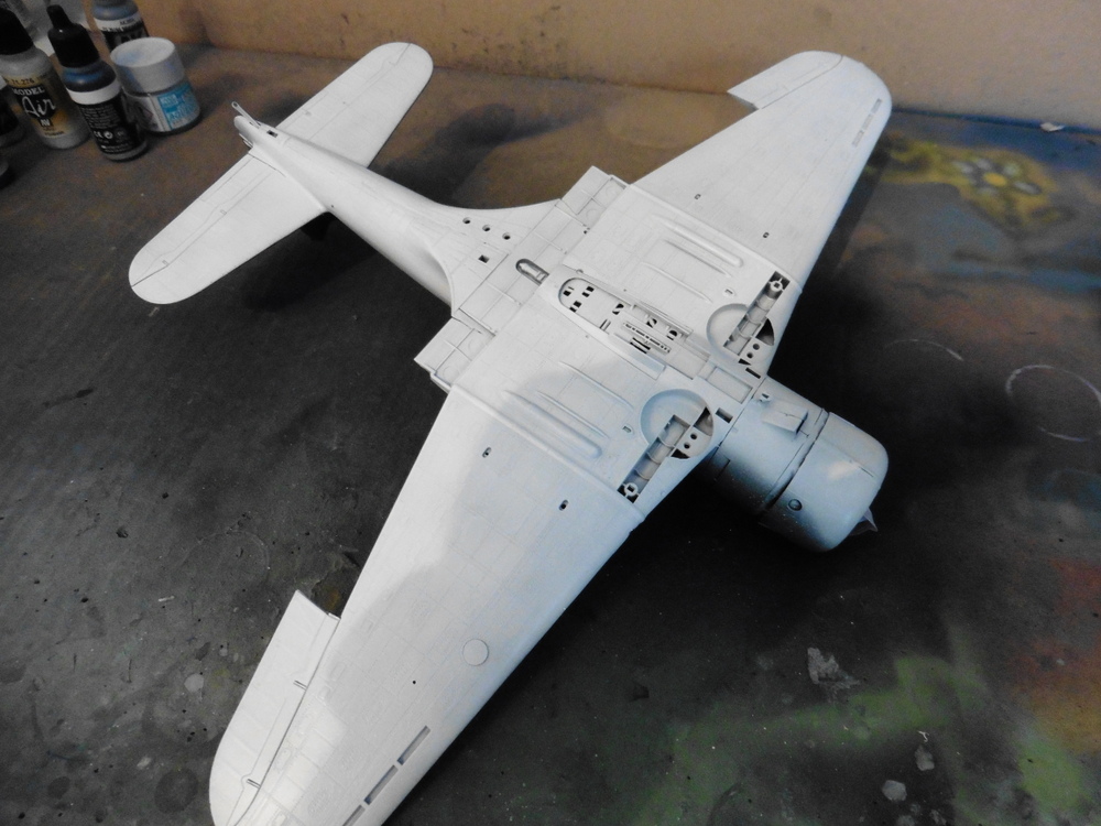 Die Passgenauigkeit war schon super. Nur minimale stellen am Rumpfanschluss zu den Flügeln . Diese wurden dann verspachtelt und geschliffen .
