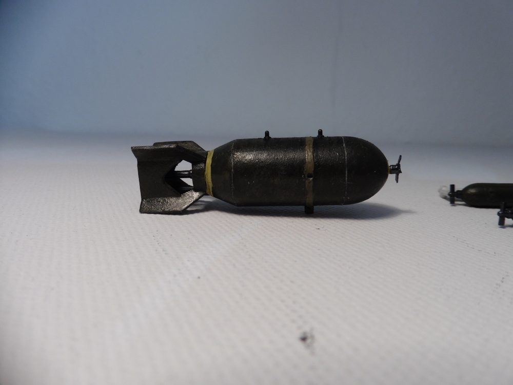 gestern abend hab ich mich mal um die Bomben gekümmert . Eine fette maximal 726 kg unter dem Rumpf und 2 x295 kg unter den Tragflächen