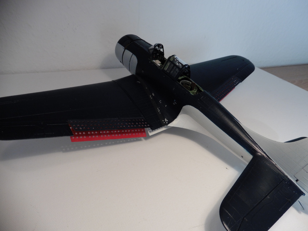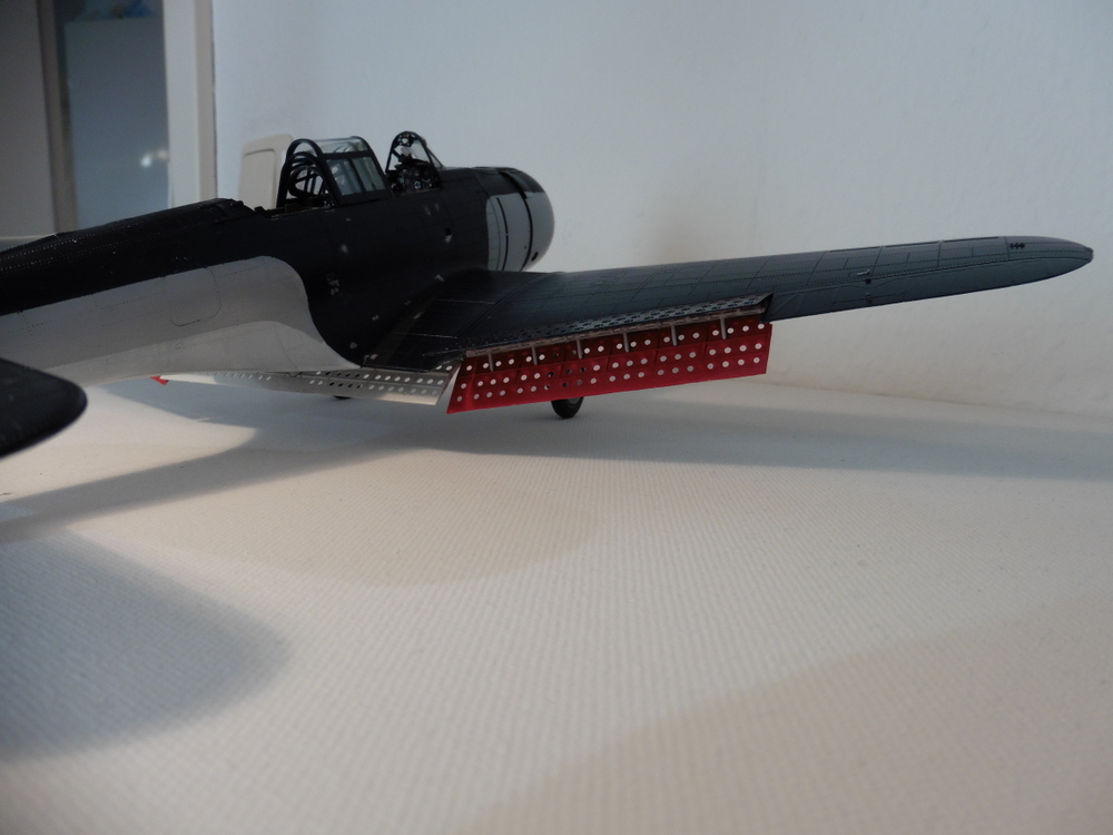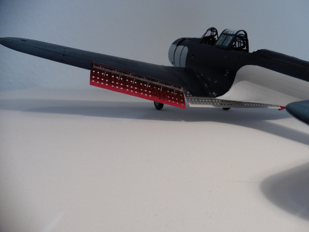 Im Wechsel mit der Bombenbemalung habe ich gleichzeitig an den Brems/ Stabilitätsklappen gearbeitet . Diese sind ein Eyecatcher da sie an der Innenseite Rot waren / sind .