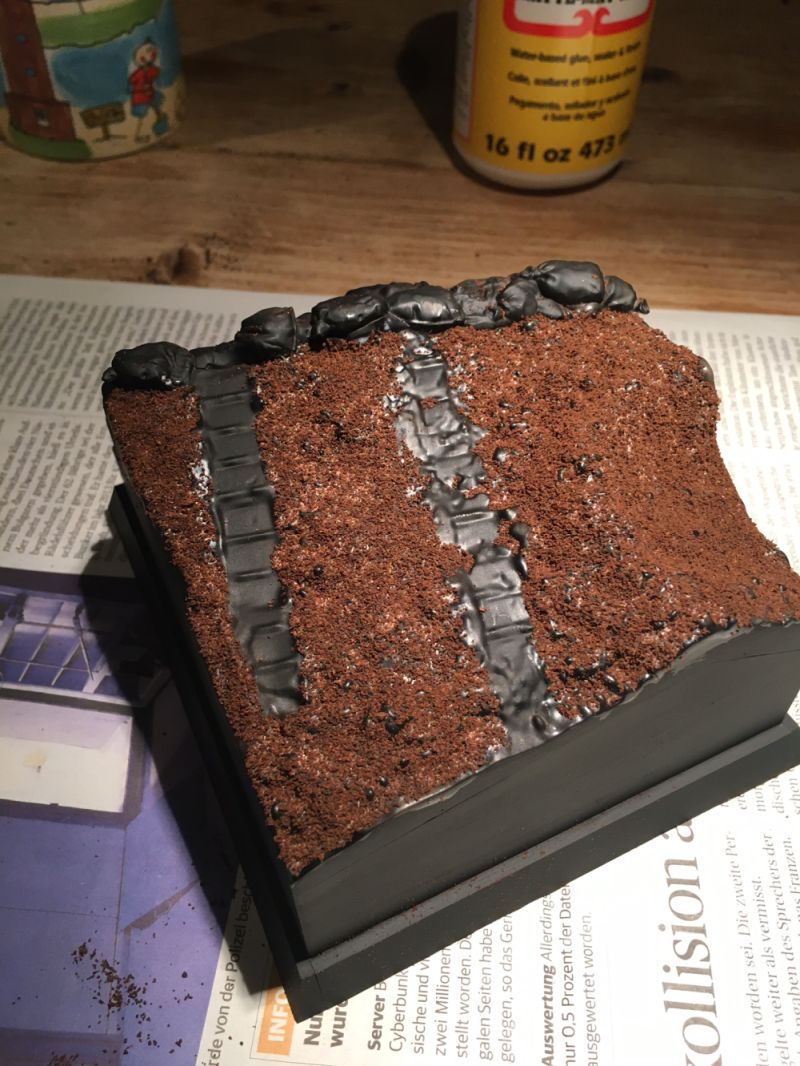 Die Geländedarstellung ist gut. Um ihr Struktur zu geben, habe ich sie mit Mod Podge bepinselt.