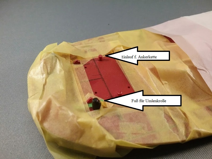 - zwei Rollen für die Ankerketten, Stb - und Bb Anker
