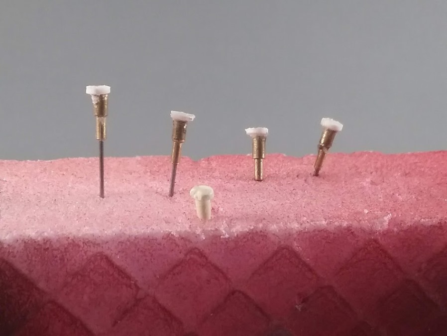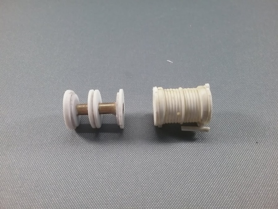 Die selbstgebauten Zylinder bestehen aus Messingröhrchen 2,5 und 1,5 mm, die auf ein Stückchen Federstahl 0,5 mm aufgeschoben und verklebt wurden.