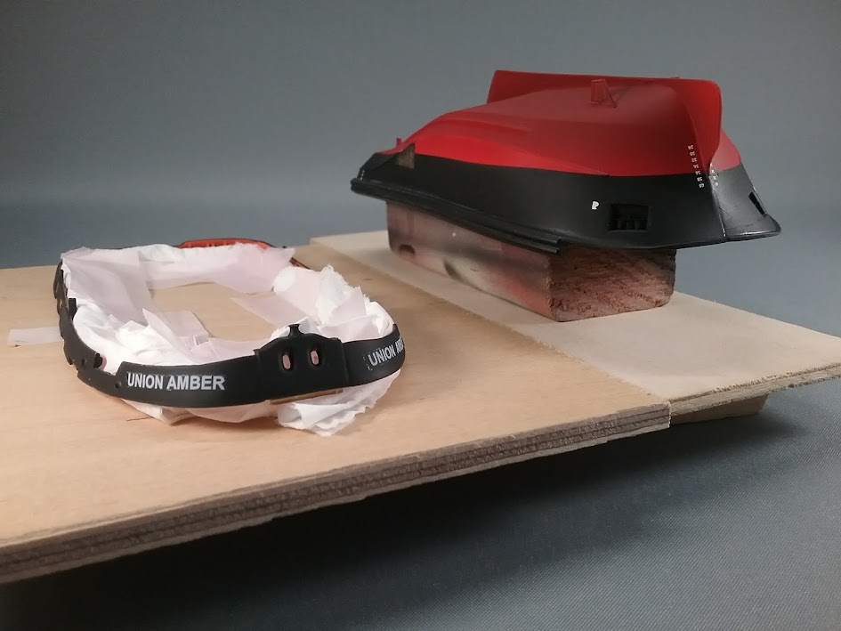Damit ich beide Hände frei habe werden die Bauteile auf "Hilfsmitteln" fixiert. . Wasserauftrag
