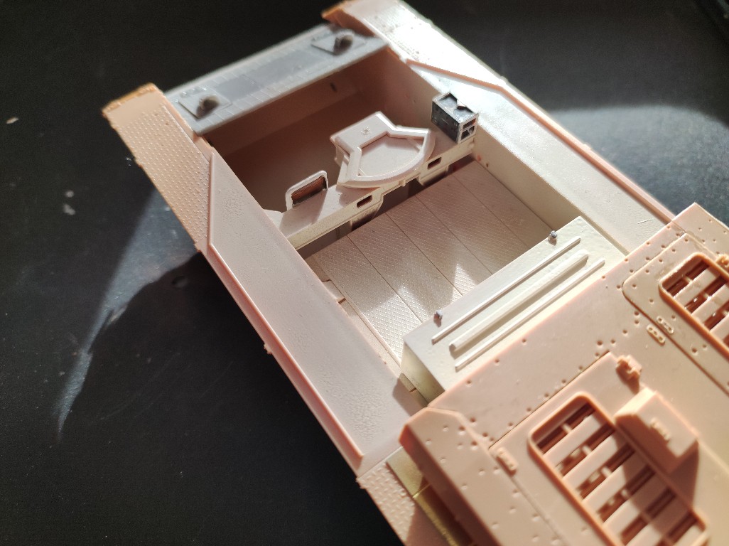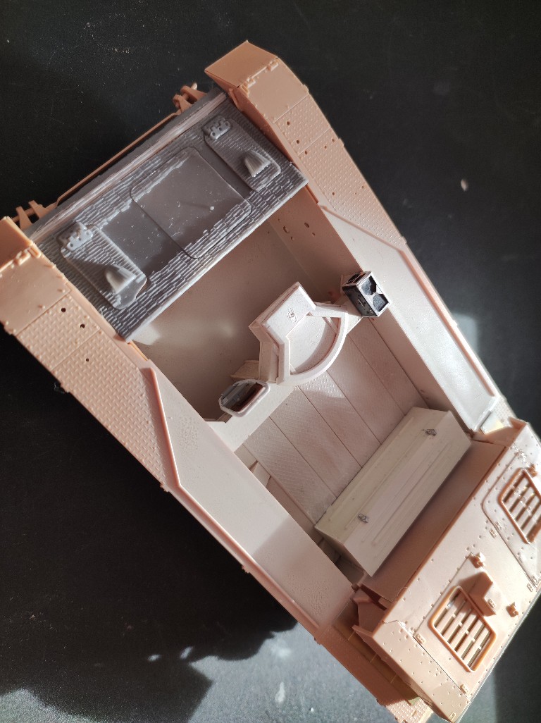 Nachdem die Teile für den Innenraum fertig waren konnte der Aufbau des Kampfraums zusammen gesetzt werden.