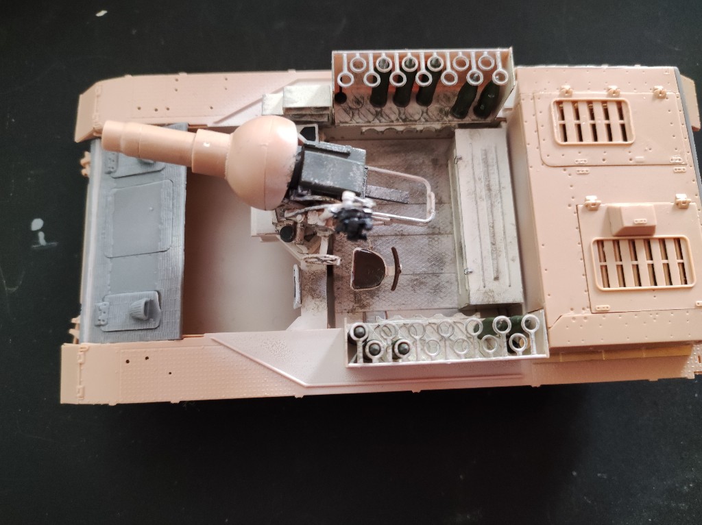 Auch die Eingebaute Kanone mit den Munitionsvorräten sind an Ort und Stelle und mit Wash versehen