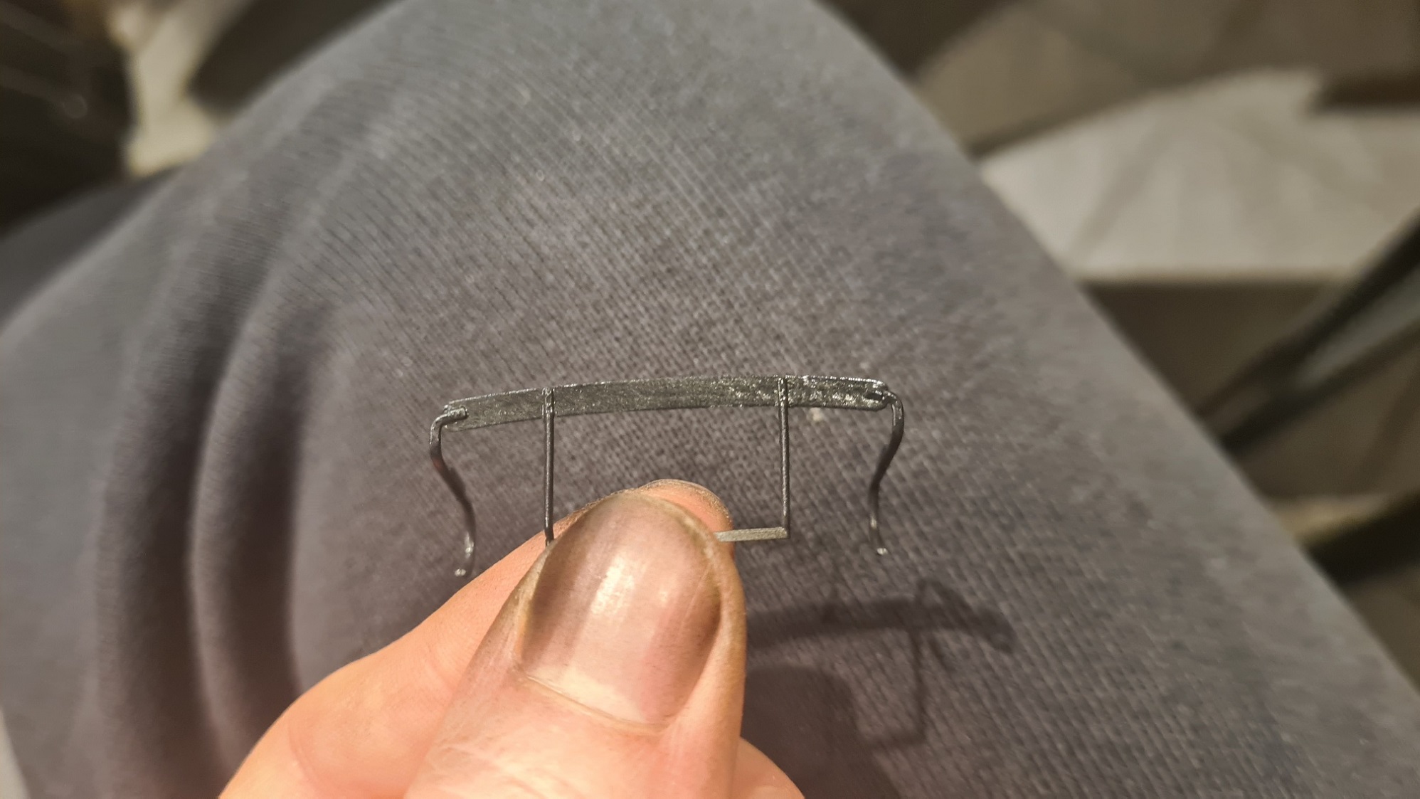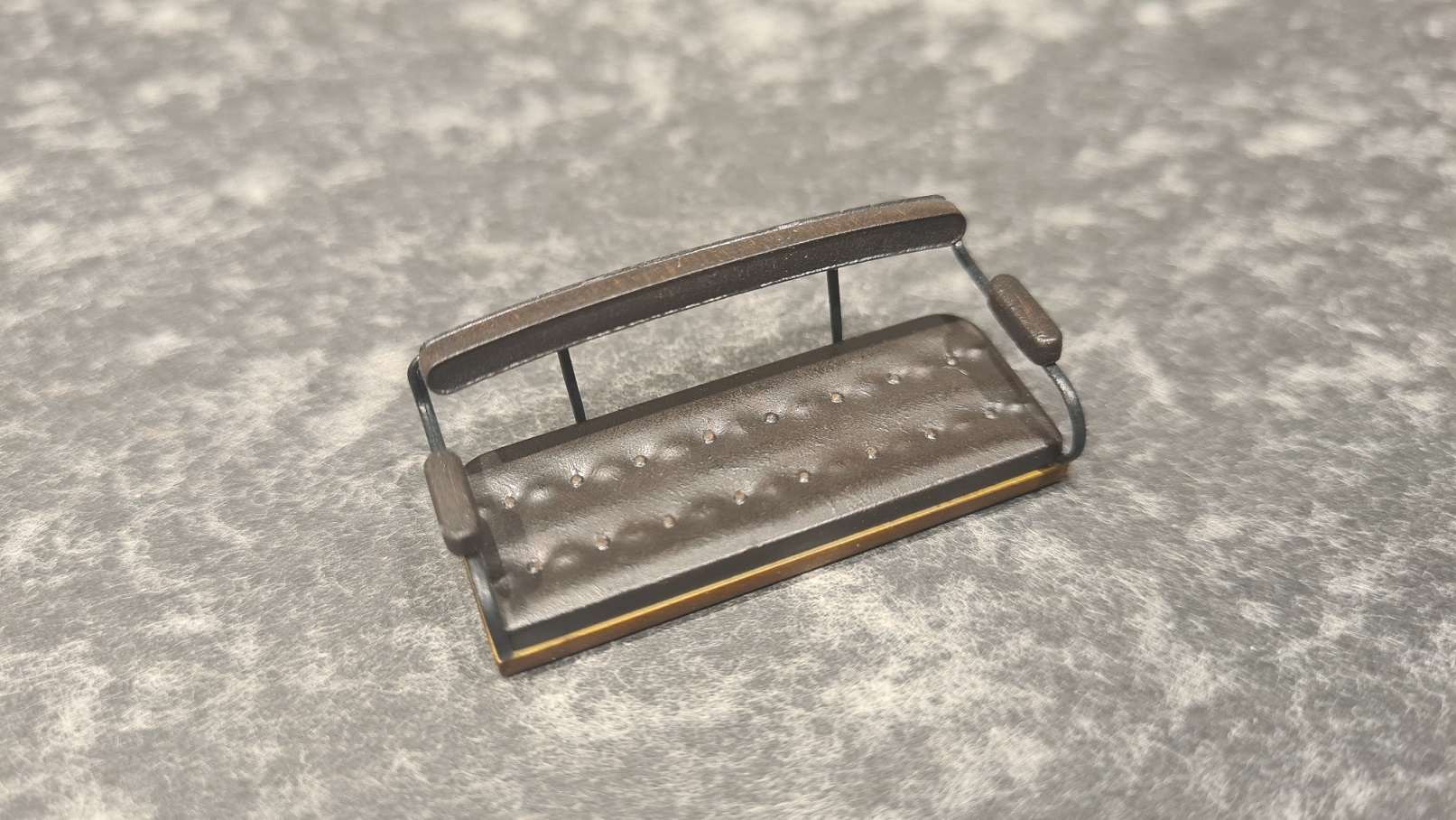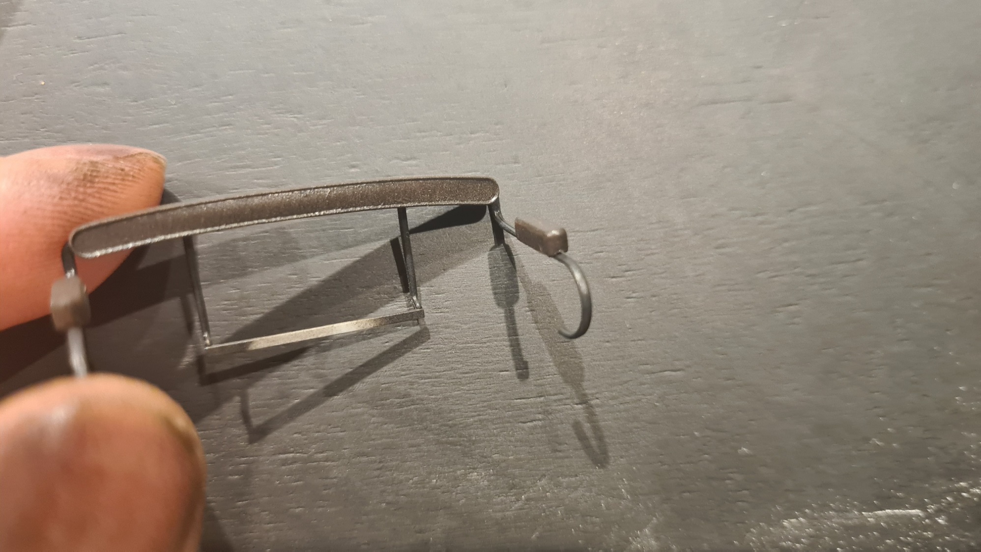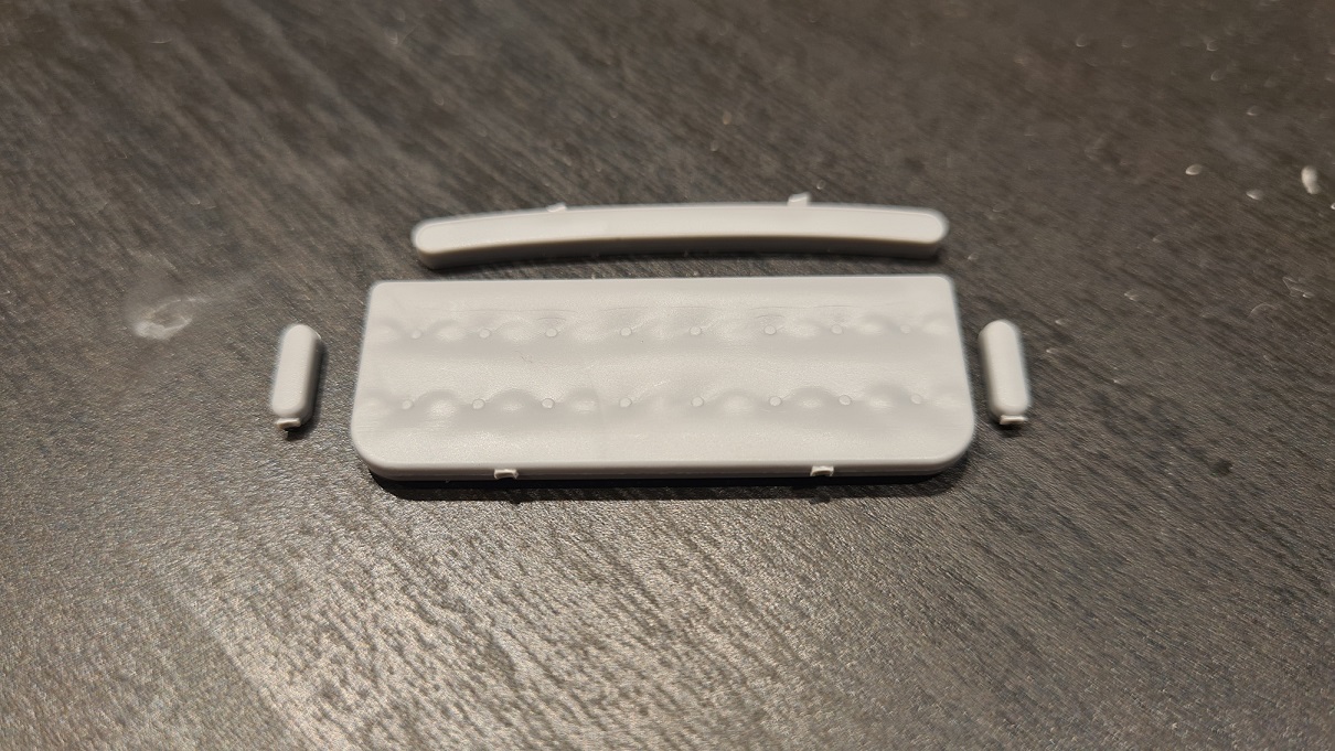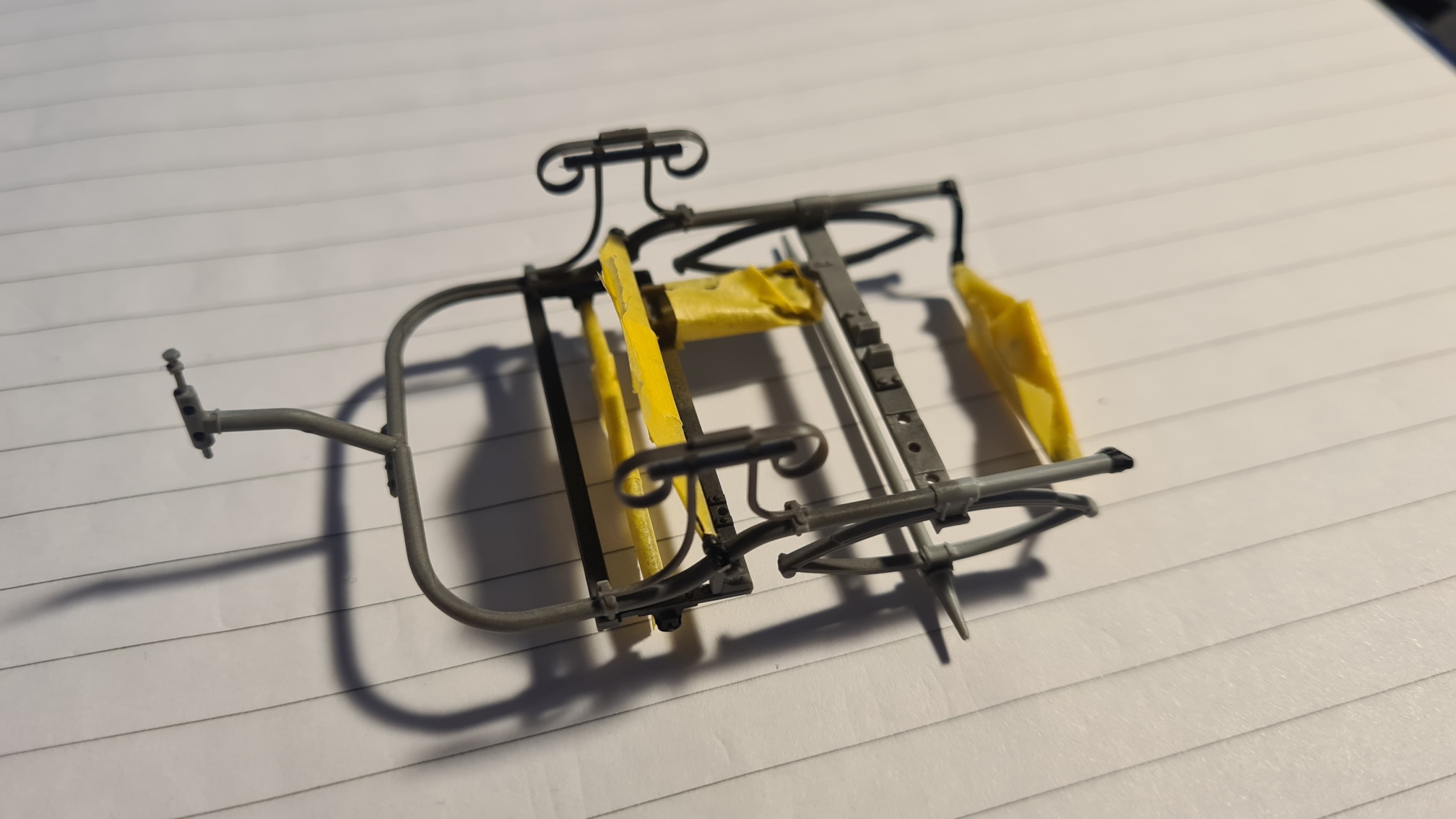 Das Ding war am Ende das erste erfolgreiche Versuchsauto. Ich möchte im Folgenden keinen perfektionierten Nachbau portraitieren, sondern mich etwas eher am Original ausrichten. Bei mir sind die Bretter nicht alle aus einem edlen Gehölz, sondern irgendwie alle etwas unterschiedlich. Ich habe daher den Spritzling als Basis mit Tamiya XF59 (wüstengelb) gesprüht und einzelne Bretter (beidseitig) mit XF-52 (Flat Earth) nachgedunkelt.