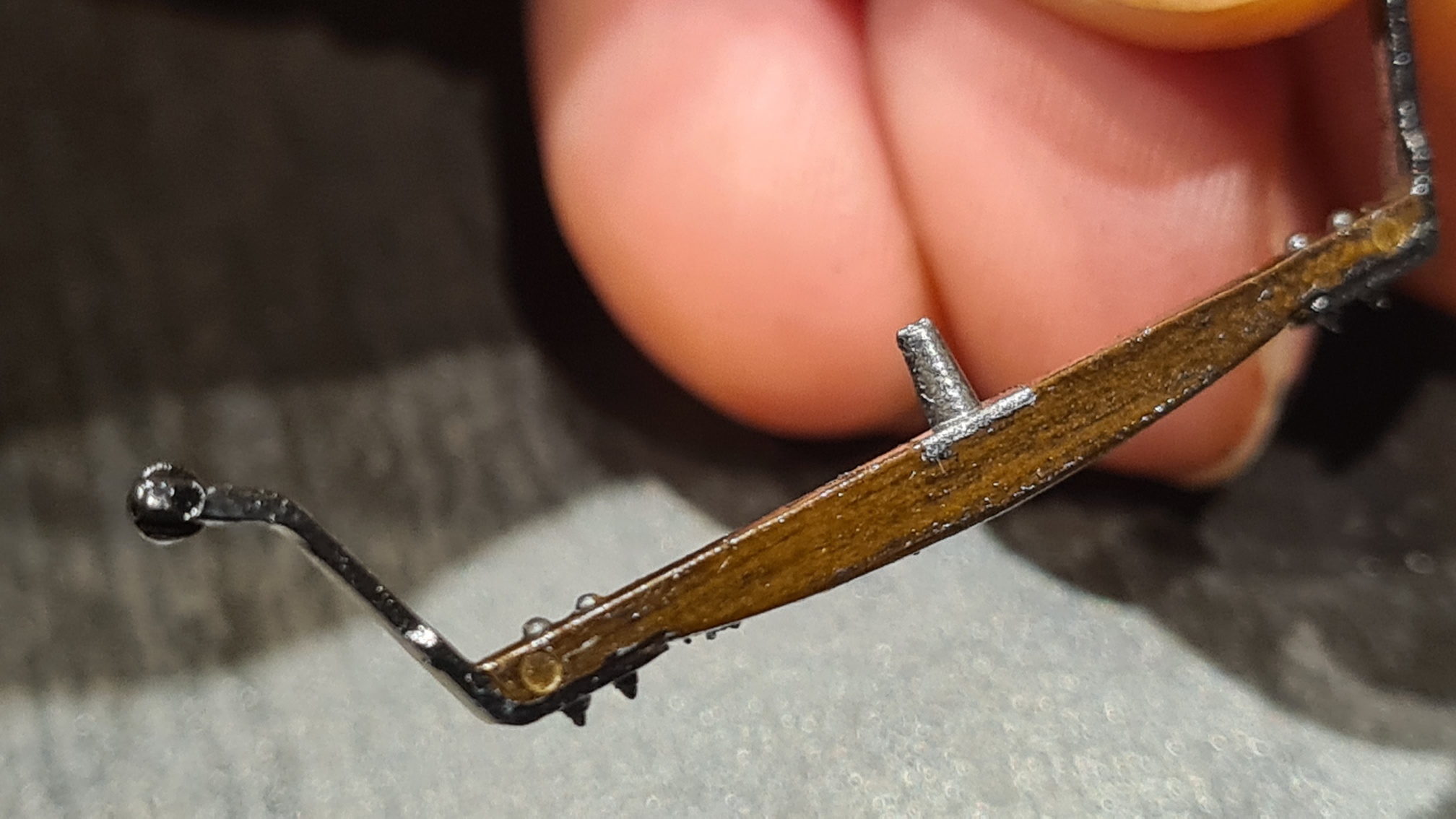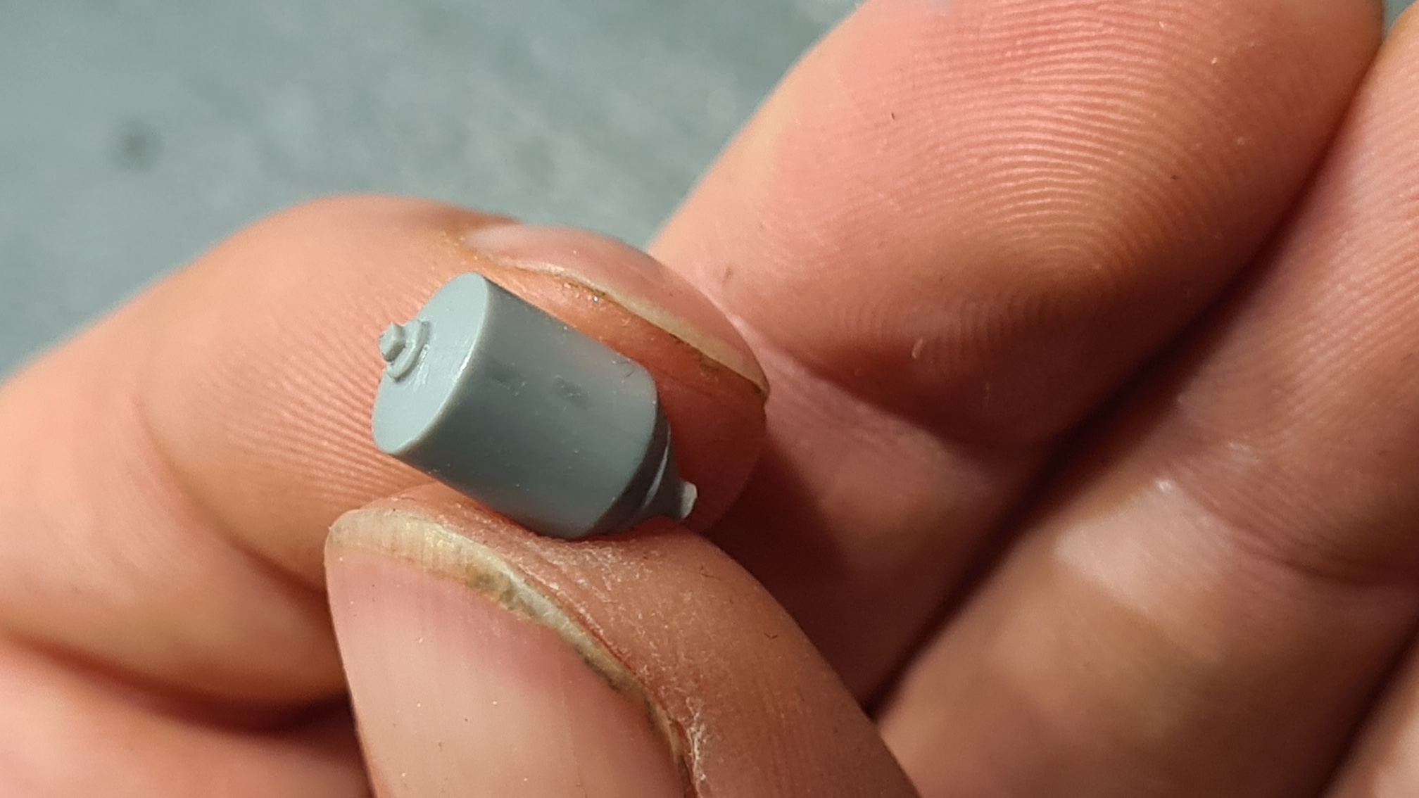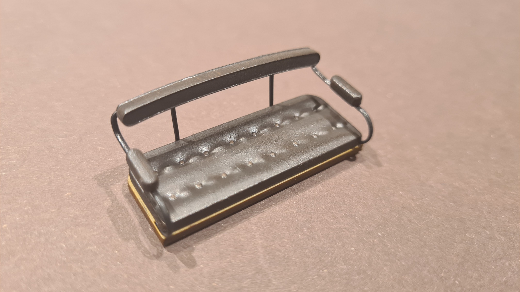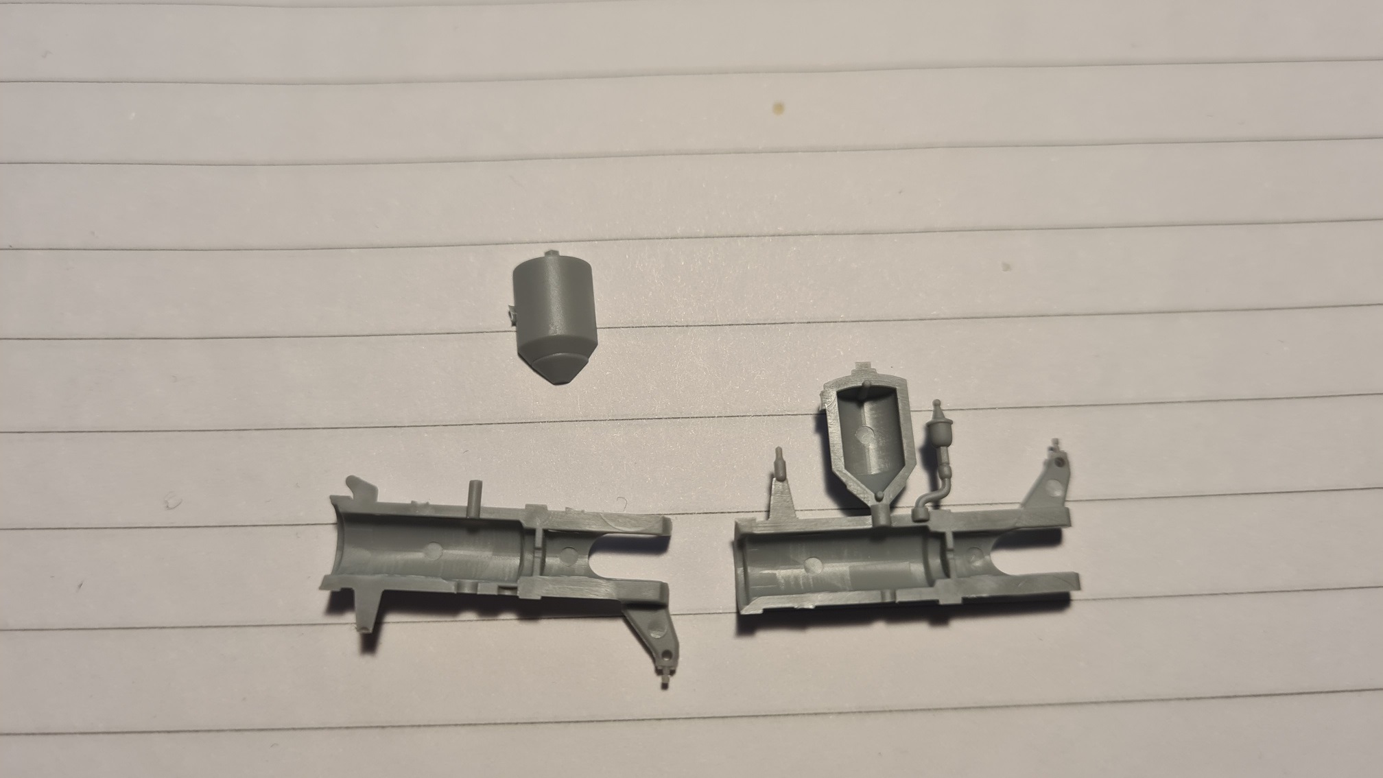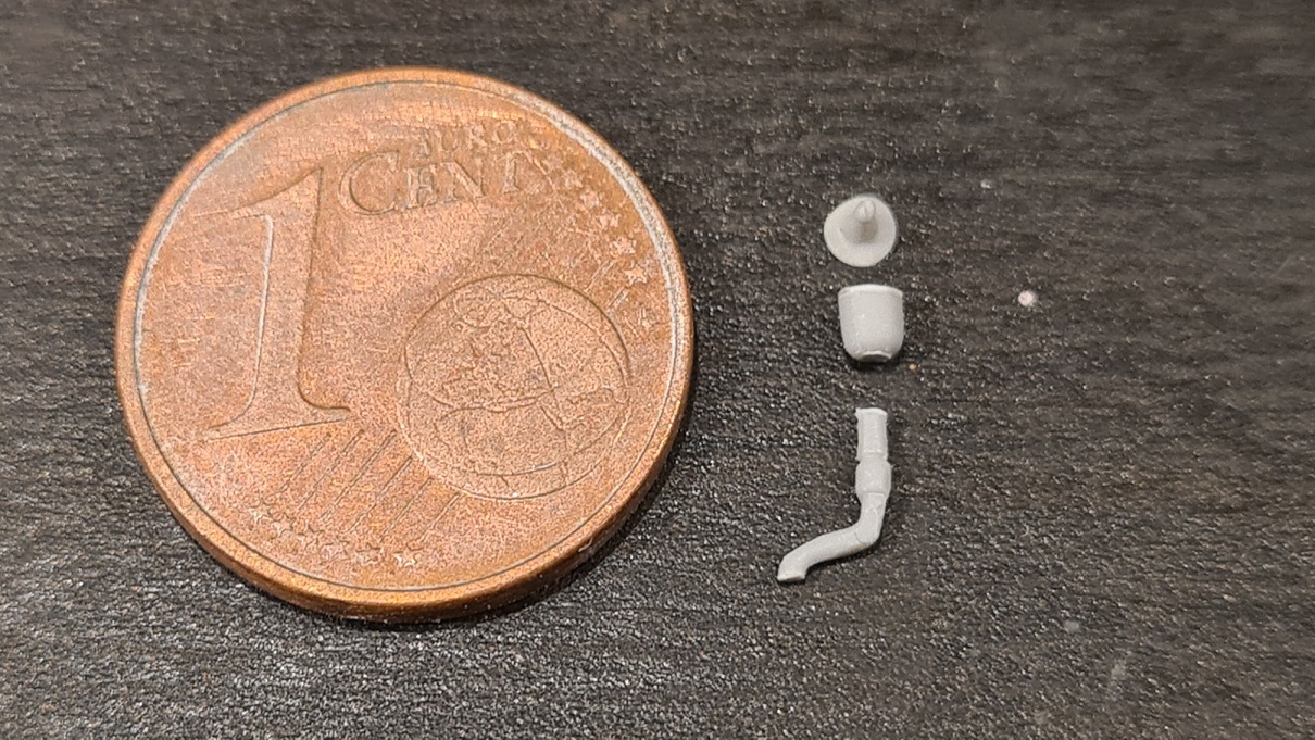 Das Ding war am Ende das erste erfolgreiche Versuchsauto. Ich möchte im Folgenden keinen perfektionierten Nachbau portraitieren, sondern mich etwas eher am Original ausrichten. Bei mir sind die Bretter nicht alle aus einem edlen Gehölz, sondern irgendwie alle etwas unterschiedlich. Ich habe daher den Spritzling als Basis mit Tamiya XF59 (wüstengelb) gesprüht und einzelne Bretter (beidseitig) mit XF-52 (Flat Earth) nachgedunkelt.
