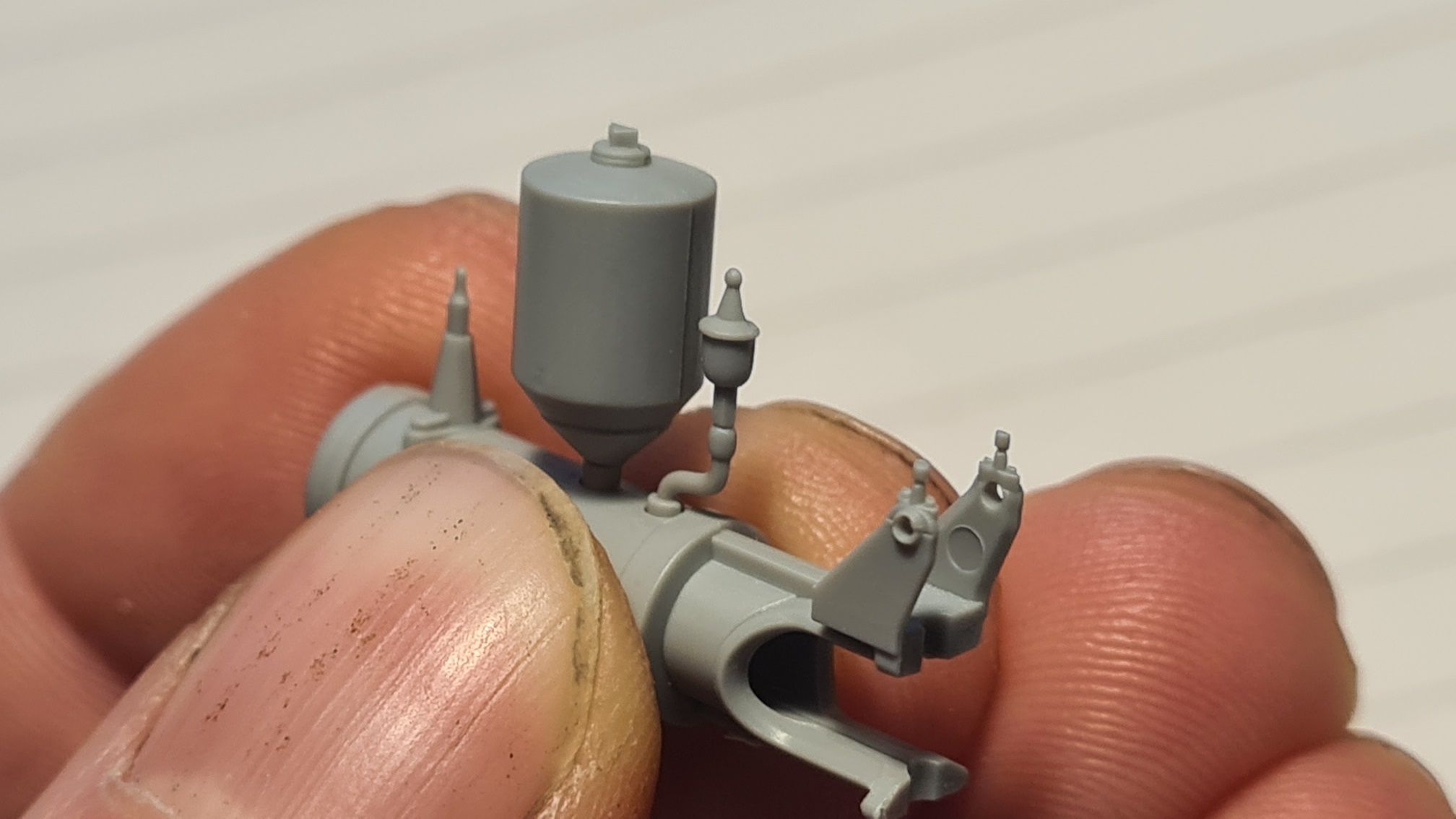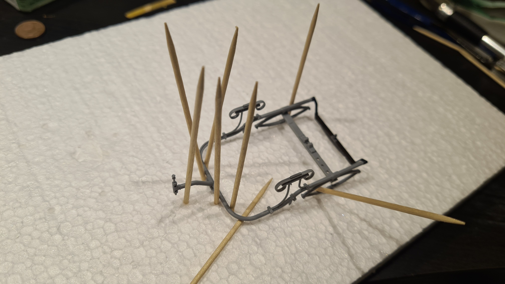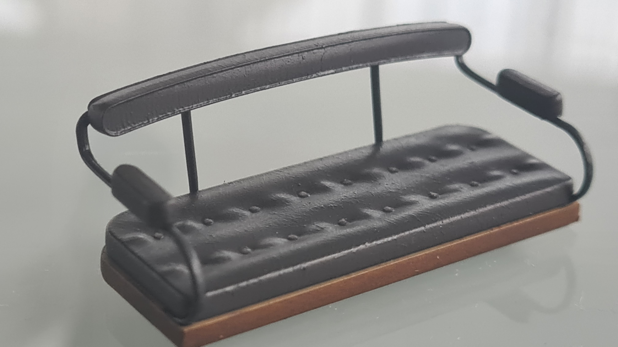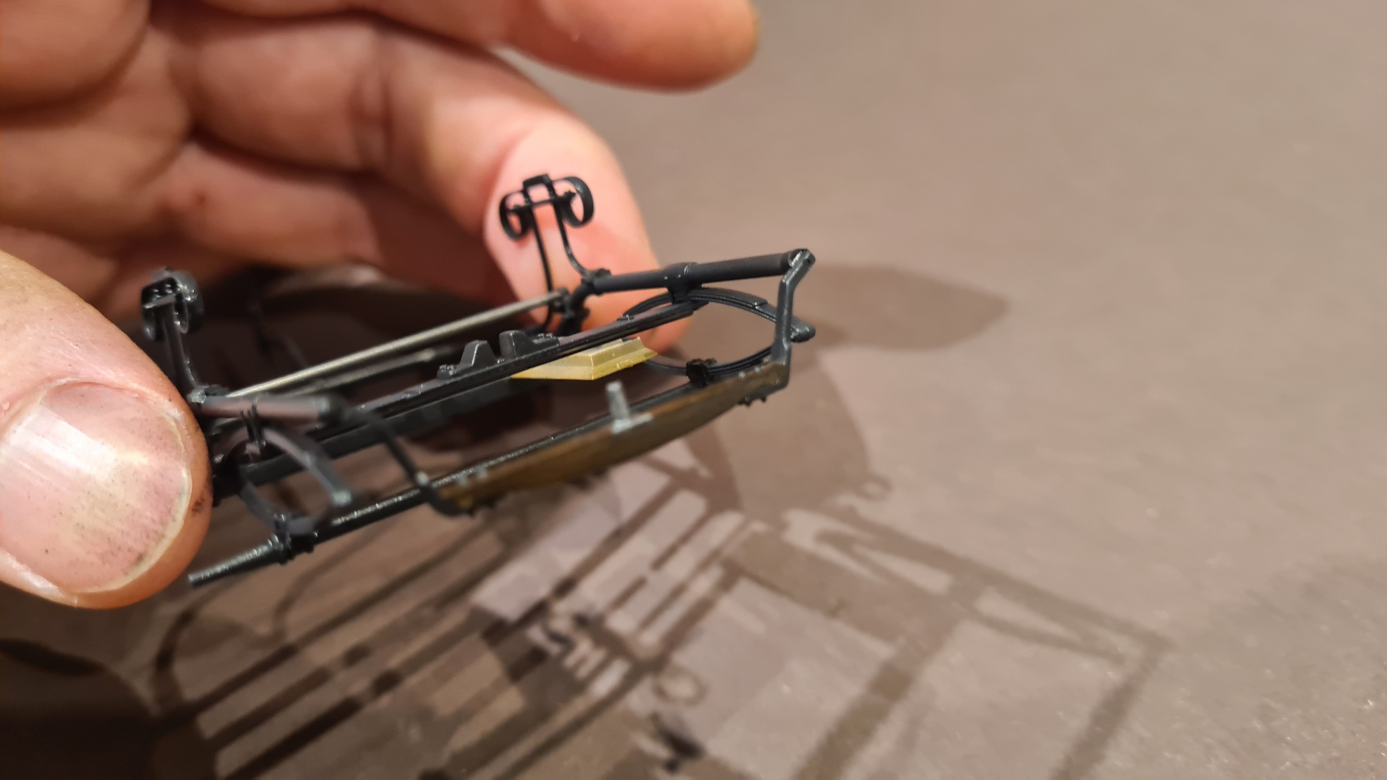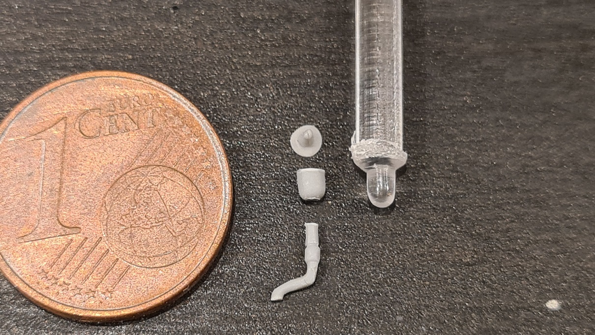 Das Ding war am Ende das erste erfolgreiche Versuchsauto. Ich möchte im Folgenden keinen perfektionierten Nachbau portraitieren, sondern mich etwas eher am Original ausrichten. Bei mir sind die Bretter nicht alle aus einem edlen Gehölz, sondern irgendwie alle etwas unterschiedlich. Ich habe daher den Spritzling als Basis mit Tamiya XF59 (wüstengelb) gesprüht und einzelne Bretter (beidseitig) mit XF-52 (Flat Earth) nachgedunkelt.