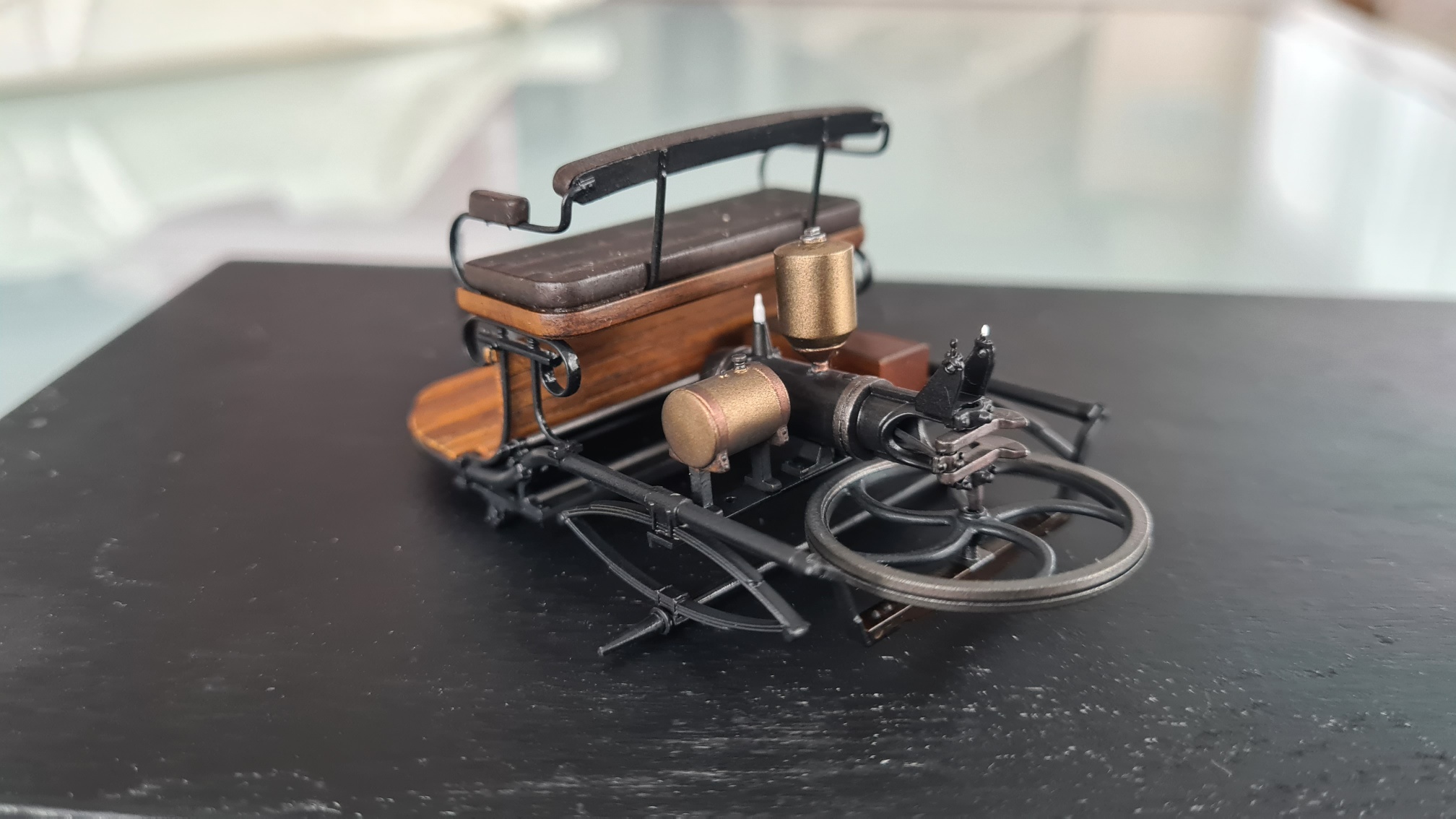 Die Bilder der aktuellen Nachbauten sind alle sehr idealisiert. Schaut man sich frühe Bilder an, dann sieht man, dass Benz mehr Maschinenbauer und weniger Zimmermann war. Z.B. hier: