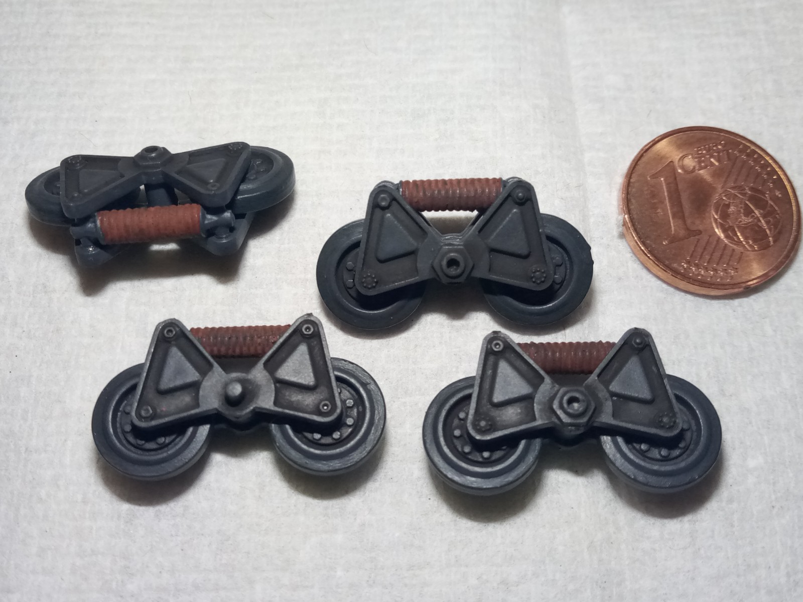 Angefangen habe ich wie immer, bei den Laufrollen (Kettenvorlauf, das grade Stück am Boden).