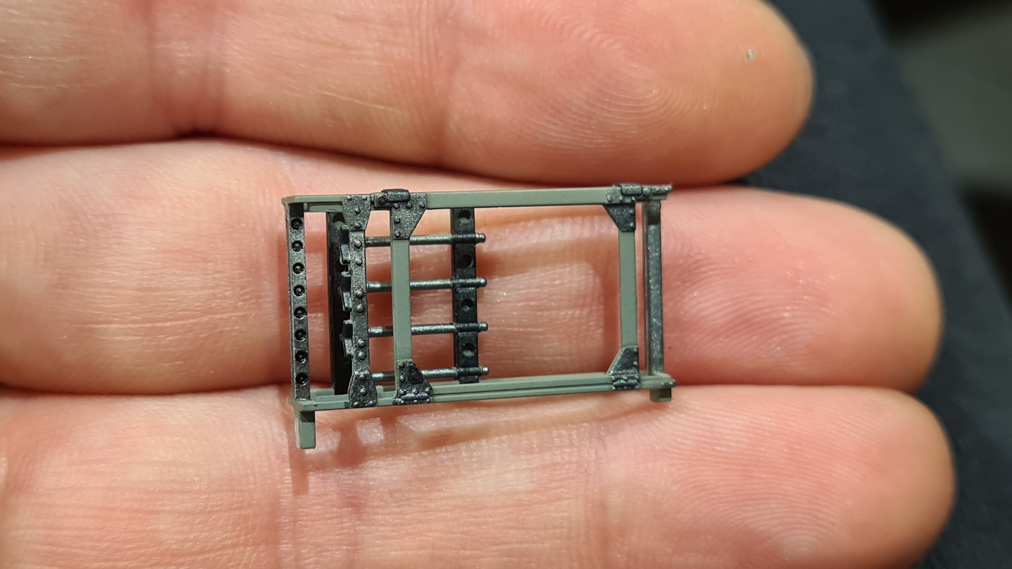 Zunächst der Unterteil/der große Tank. Schwarz lackiert