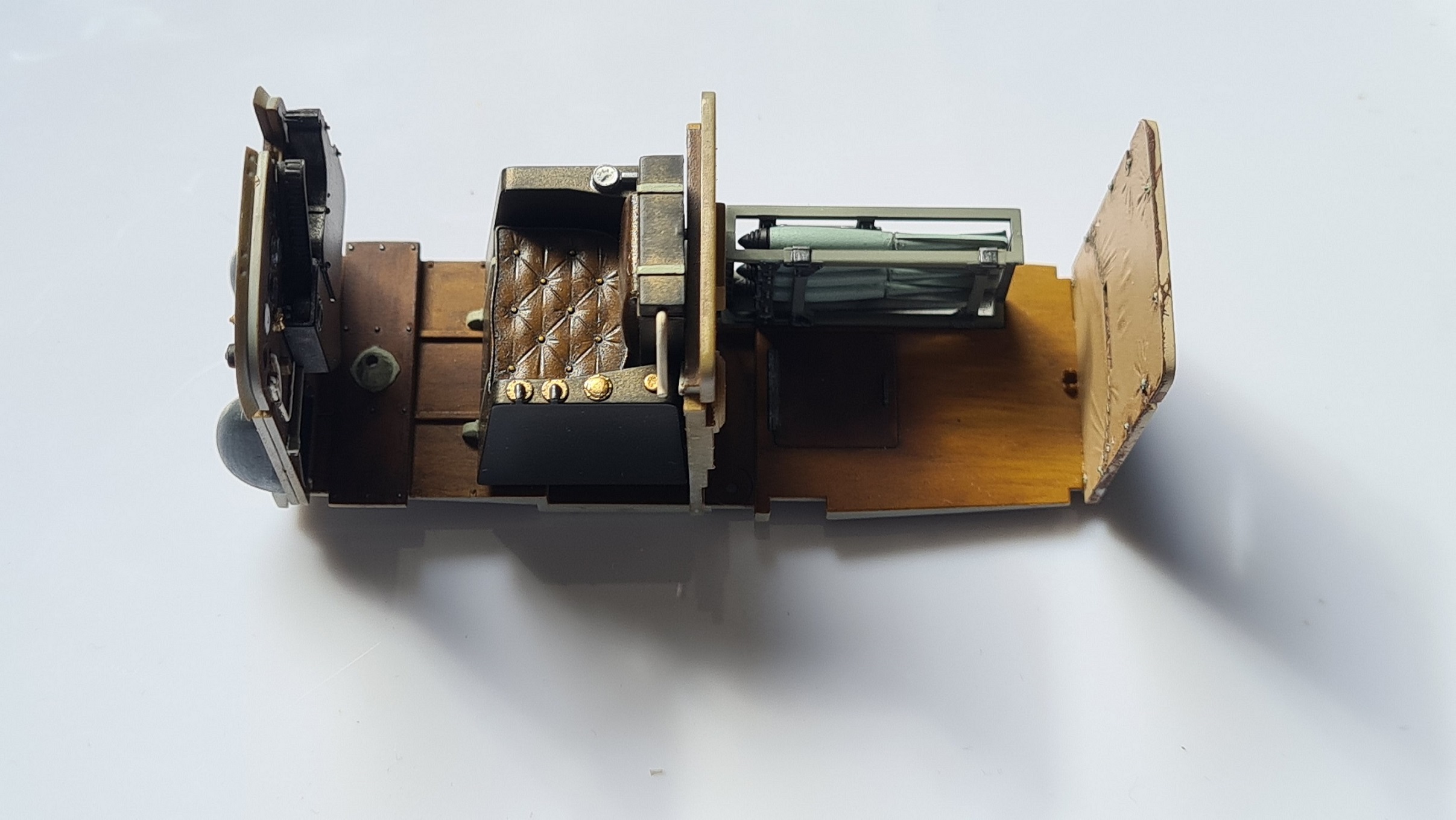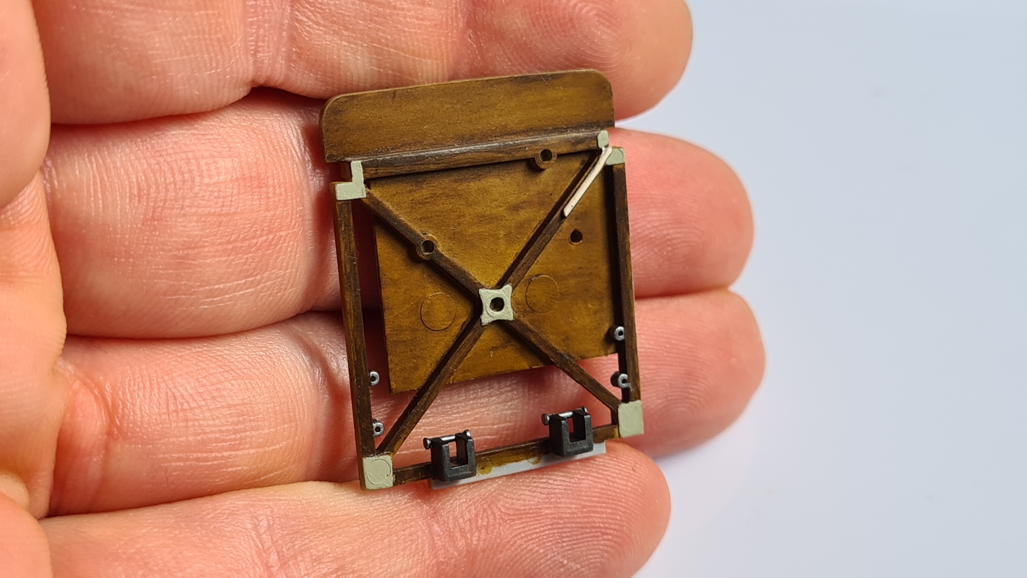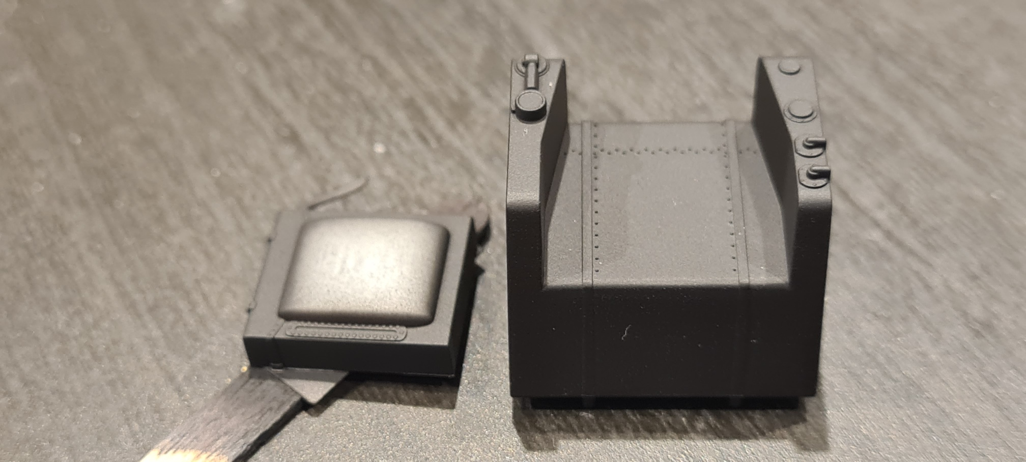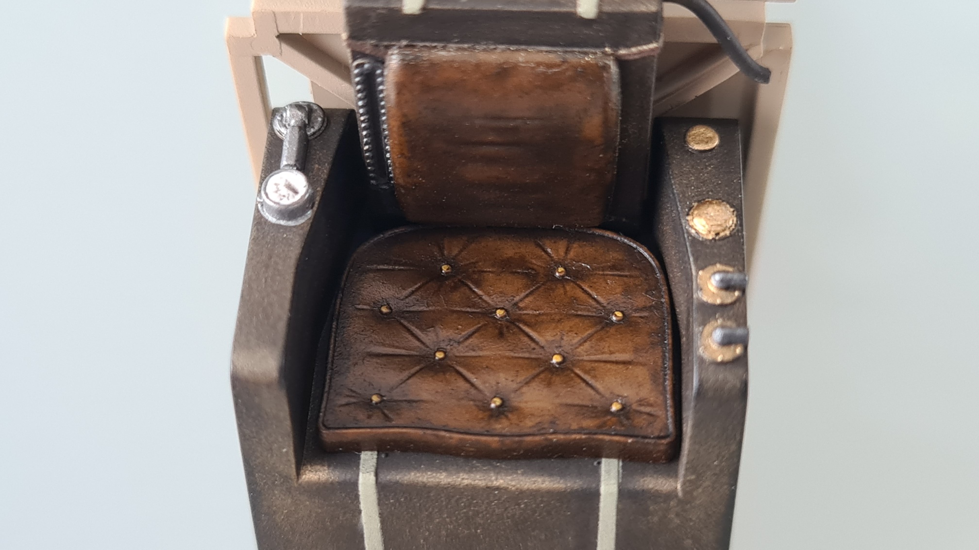 Hier der fertige Sitz trocken zusammengesteckt im noch nicht fertig gemalten Rumpf: