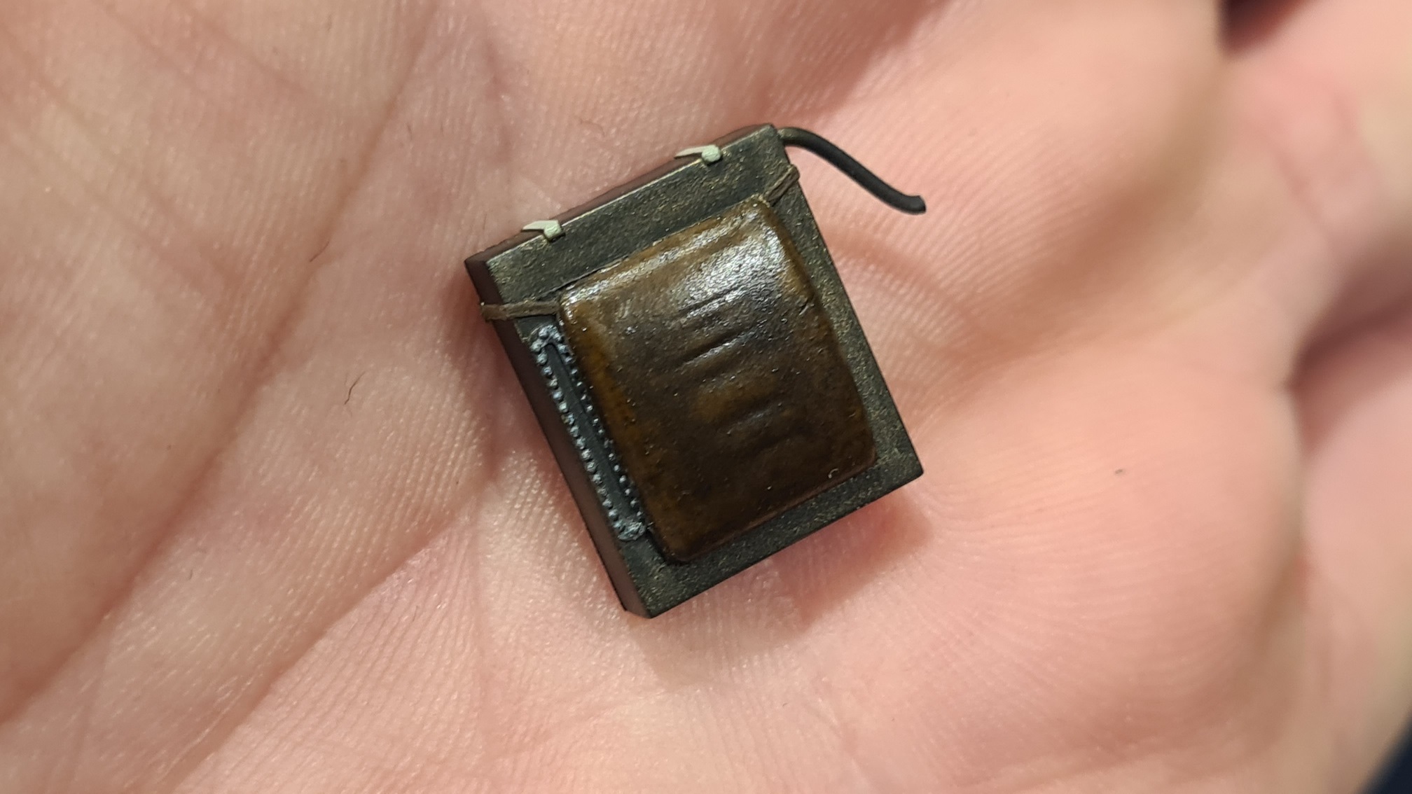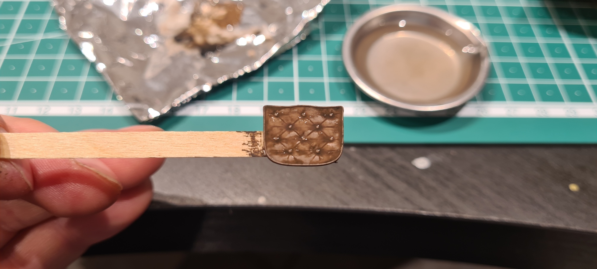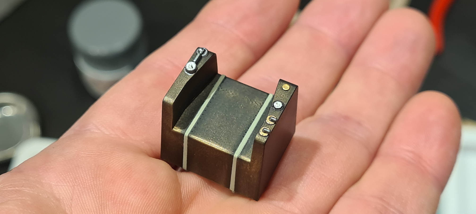 Mit eingetrockneter Messingfarbe (Döschen war wohl nicht ganz luftdicht) leicht trockengebürstet