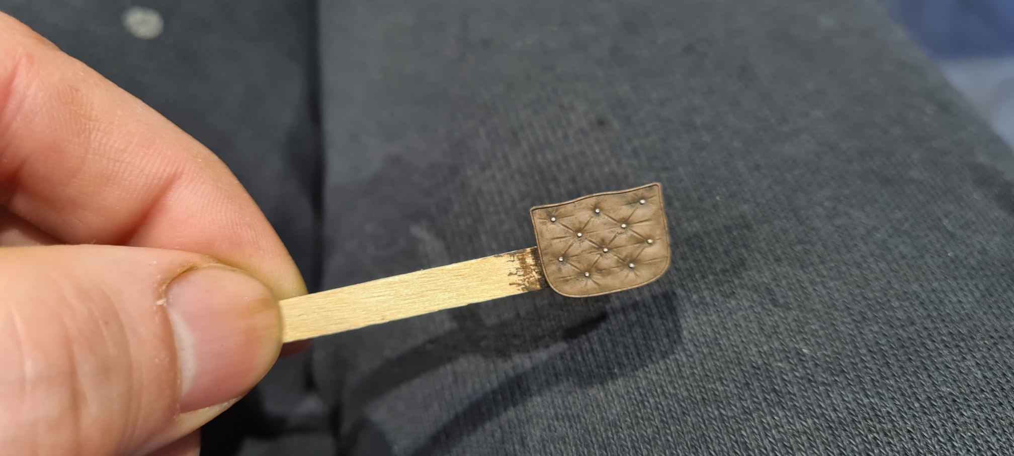 Die Rückenlehne wurde auch noch mit Messing aufgearbeitet, Halterungen koloriert