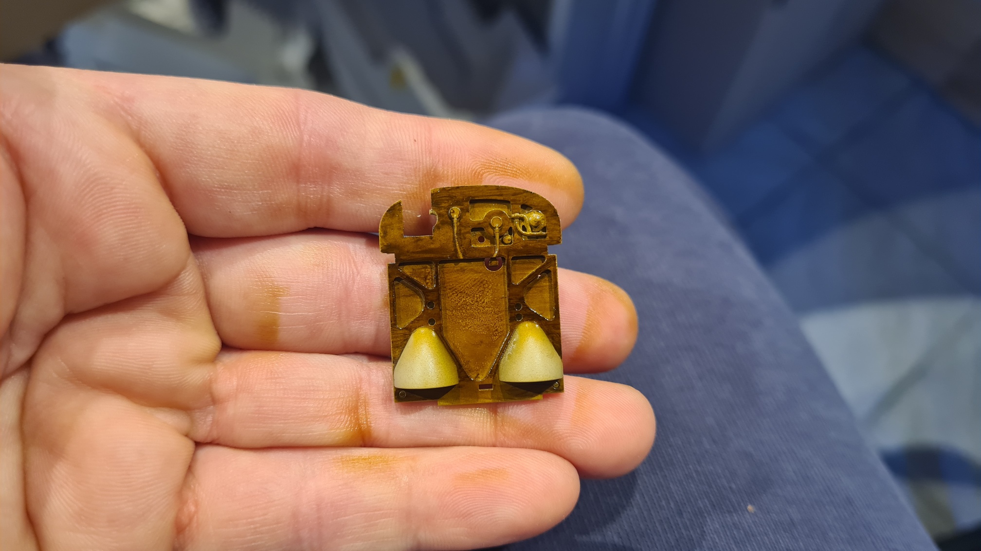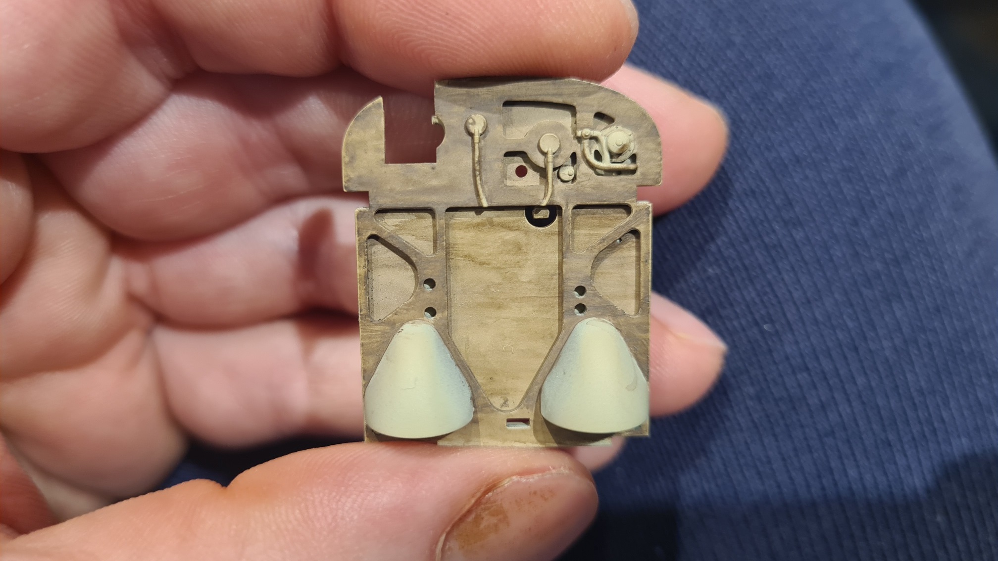 Aber zunächst wurden die Teile mit Tamiya XF-57 "Buff" vorgesprüht und wirklich gut durchgetrocknet. Exemplarisch: