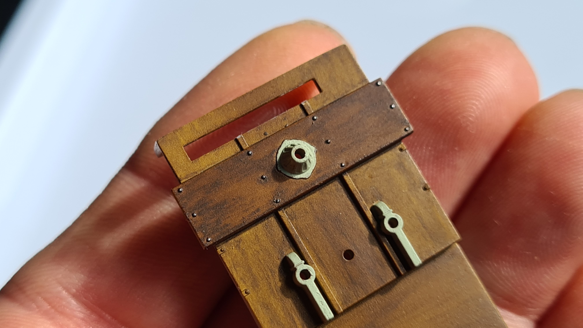 Nun sagt die gute WnW Anleitung, man kann ihn entweder in Messing darstellen oder in hellgrau. Historische Fotos gibt es nicht.