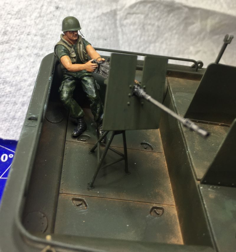 Außerdem dachte ich mir, dass bei einem feuernden Maschinengewehr noch ein paar leere Hülsen ins Boot gehören. Die sind aus einem Messingröhrchen geschnitten. Die meisten Hülsen sind beim fahrenden Boot sicher direkt ab ins Wasser ;-) .