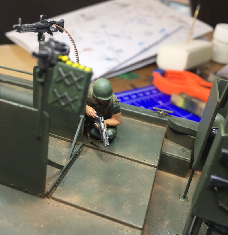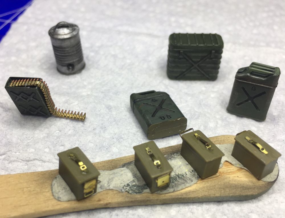 Weiter ging es mit Gerödel. Die Munitionskisten sind da noch nicht bemalt. Nur die Ätzteile sind schon dran.